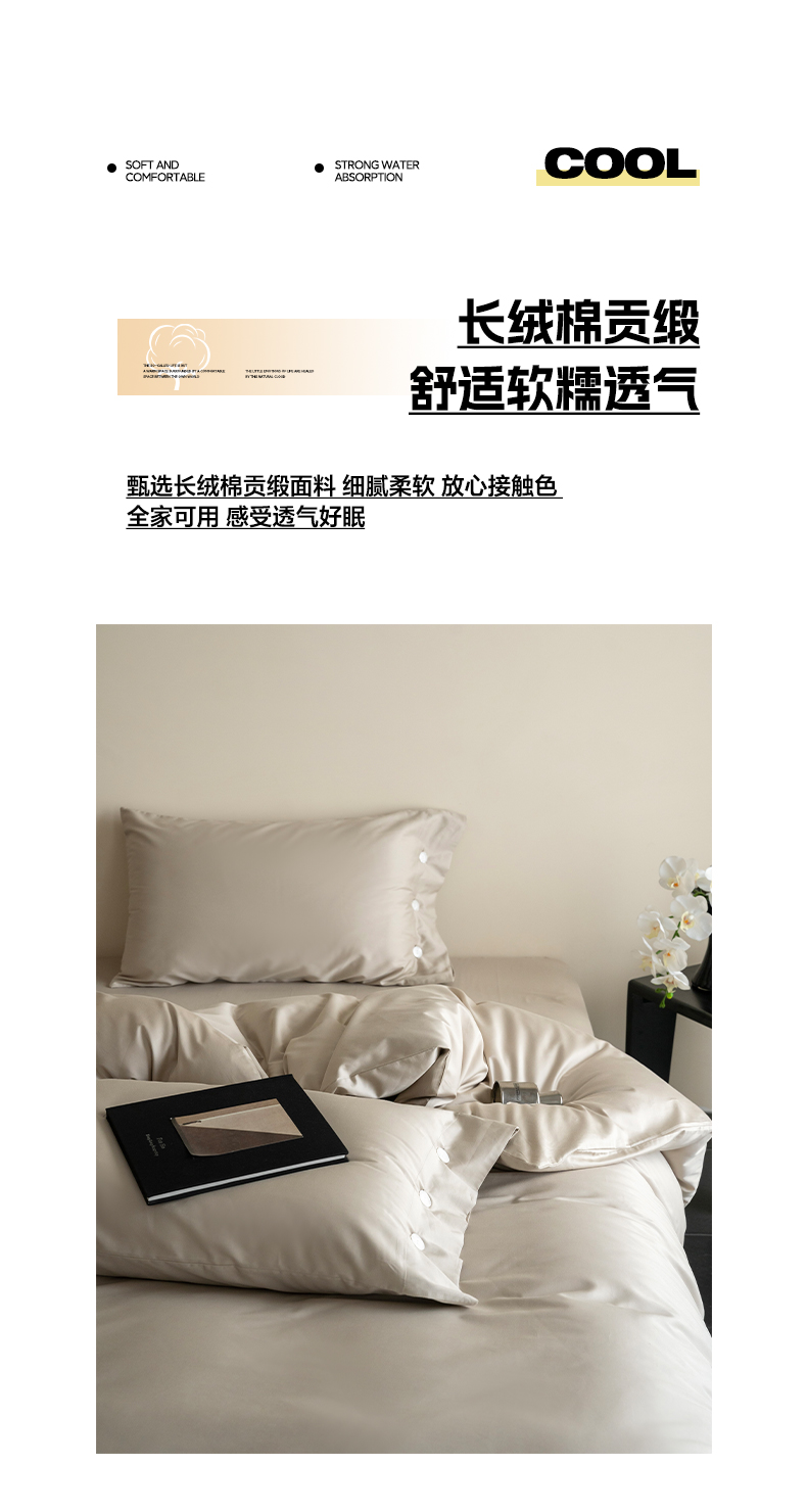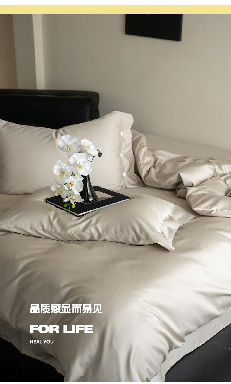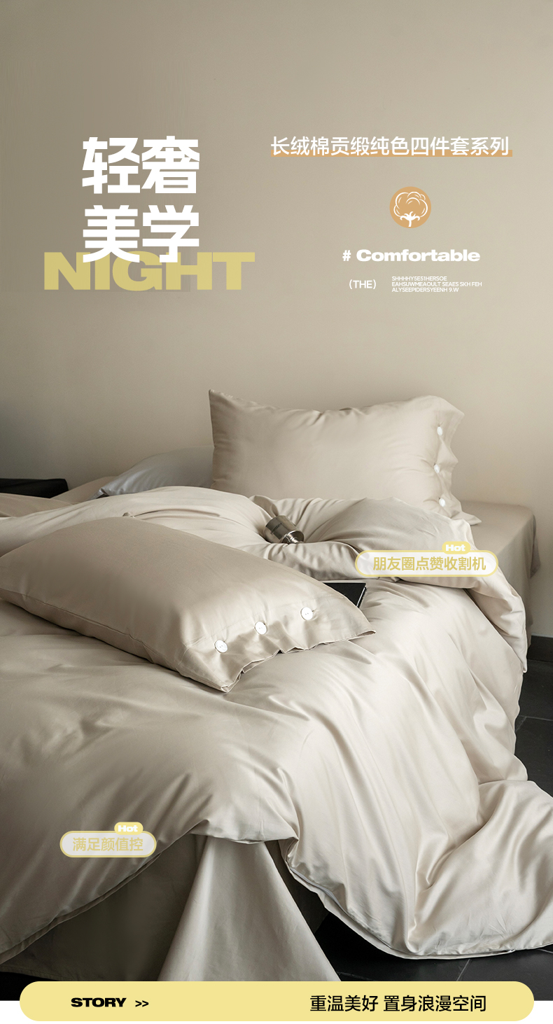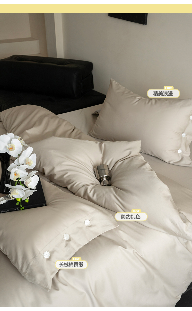 当前位置: 91家纺网 > 商品网购 > 床品套件 > 四件套 > 长绒棉四件套 > 华超针织 2025新款长绒棉纯棉贡缎纯色四件套 茶色