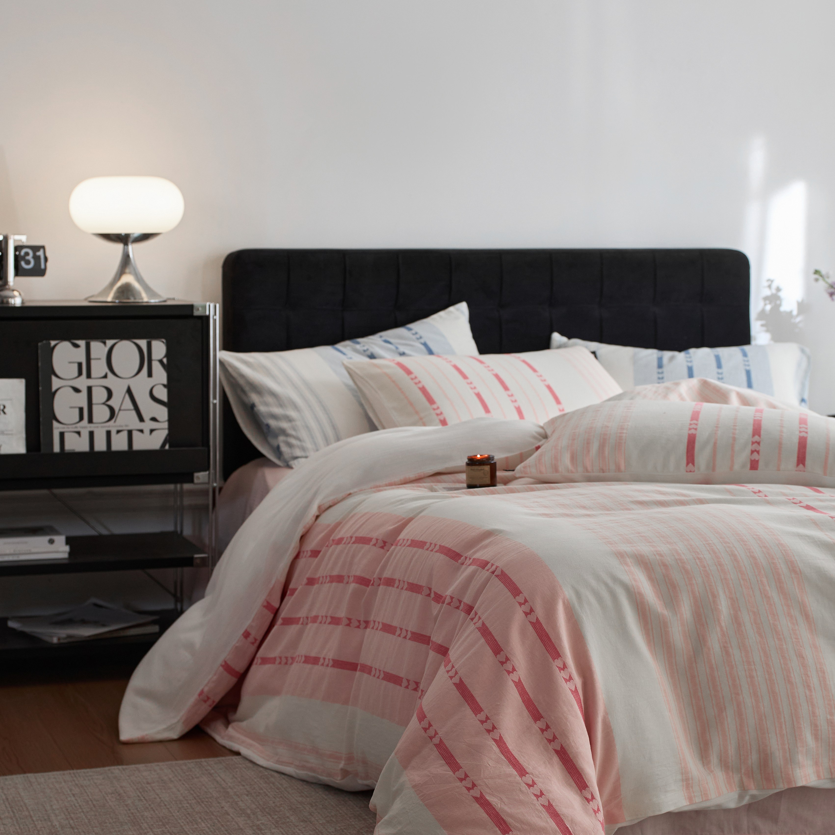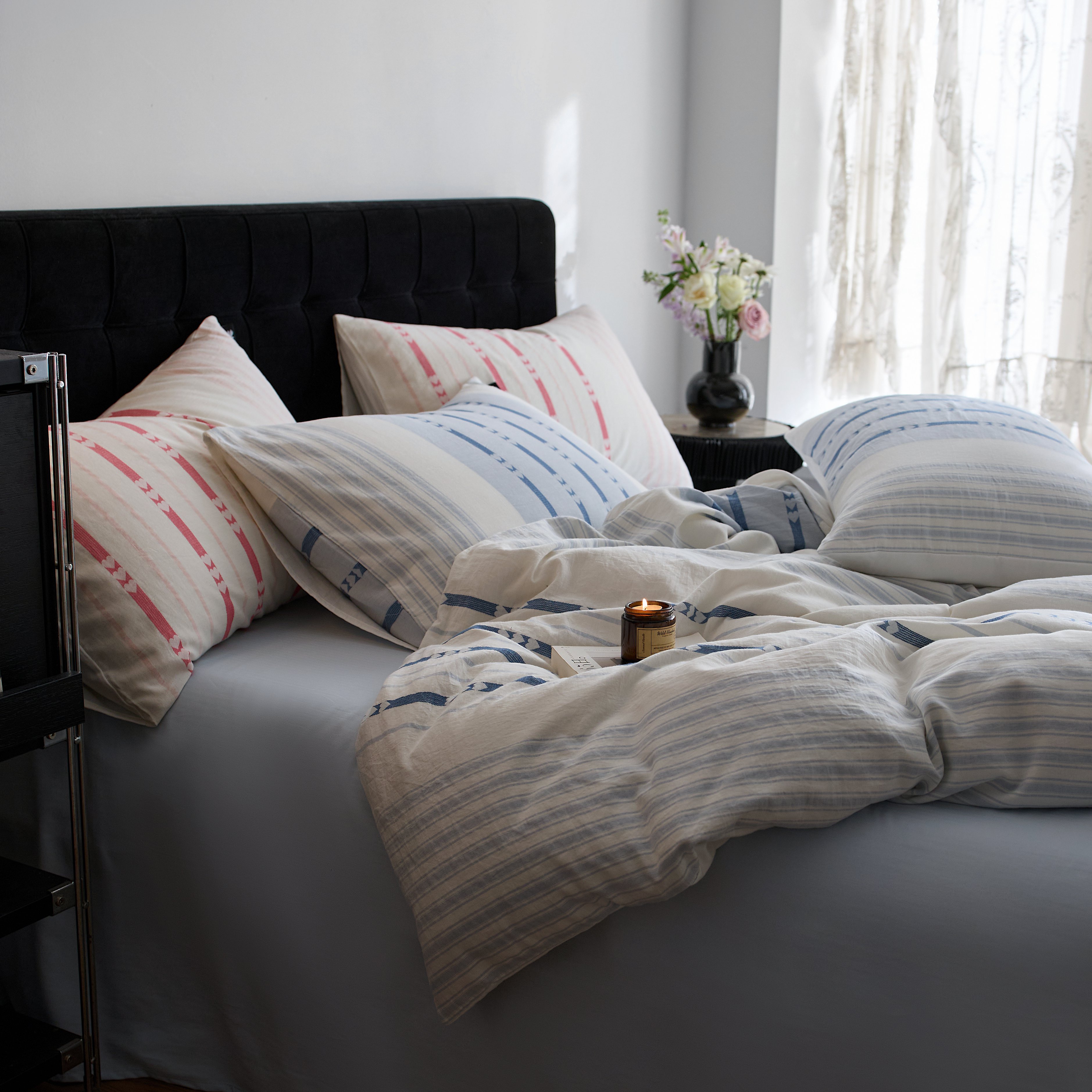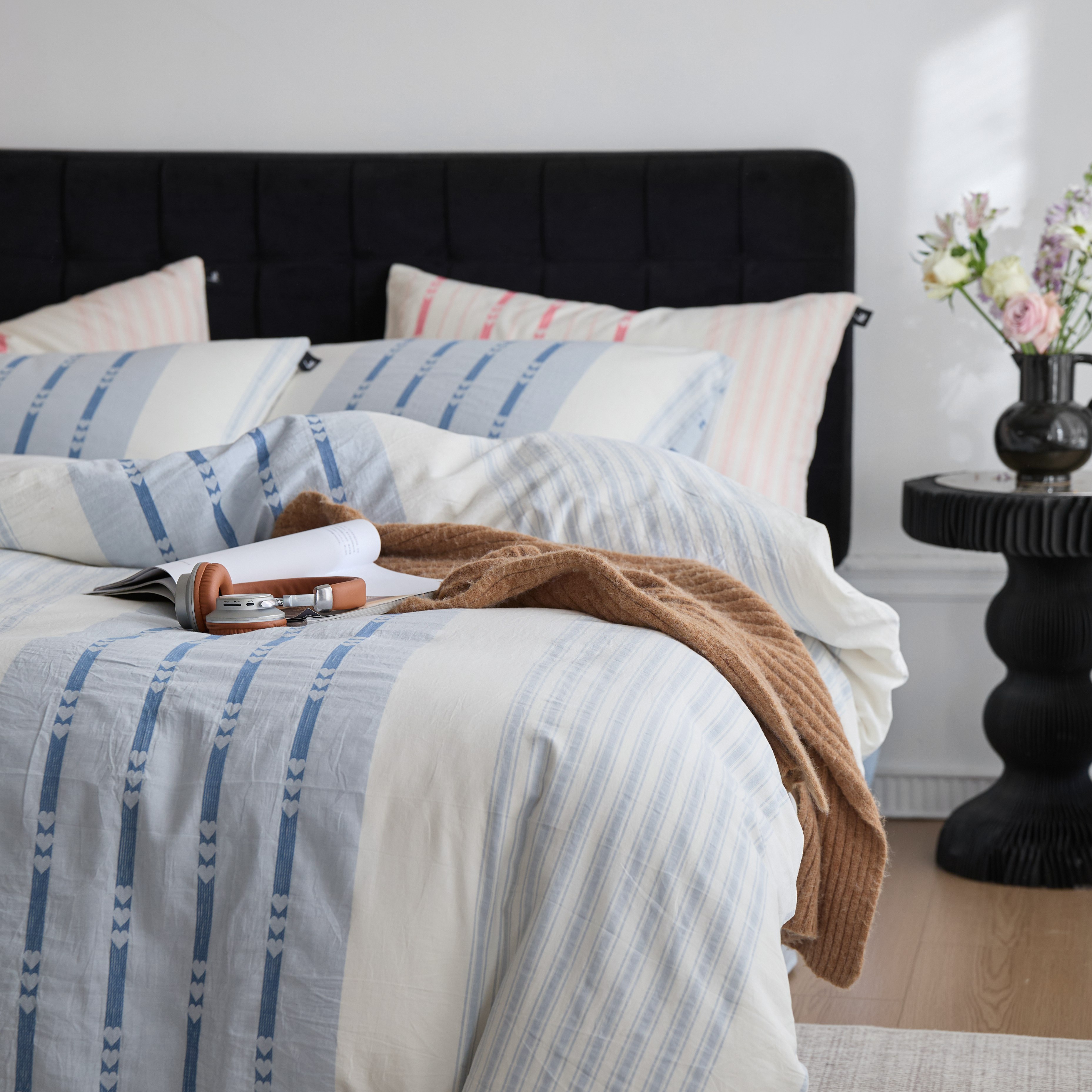 商品名称:安莱生活 2025新色织爱心提花条纹系列四件套 蓝汐纹心