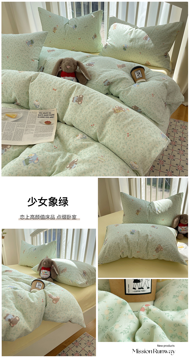 当前位置: 91家纺网 > 商品网购 > 床品套件 > 四件套 > 双层纱四件套 > XIWEN-希文家纺 2025新款A类全棉纯棉有氧双层纱四件套 少女象-绿