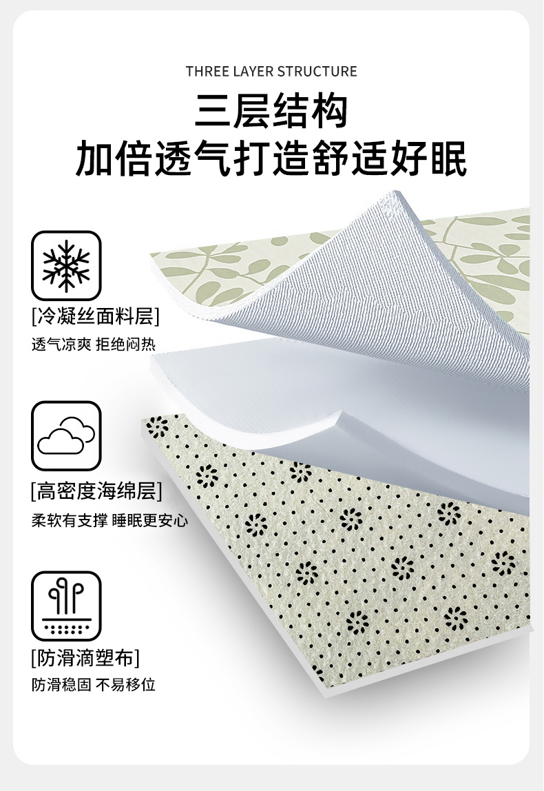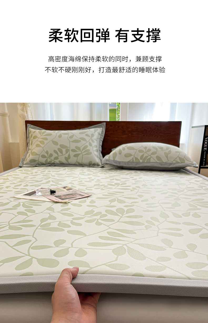 商品名称:宜代光年 2025新款冷凝丝提花凉席多功能地垫 凉感叶繁床垫-绿