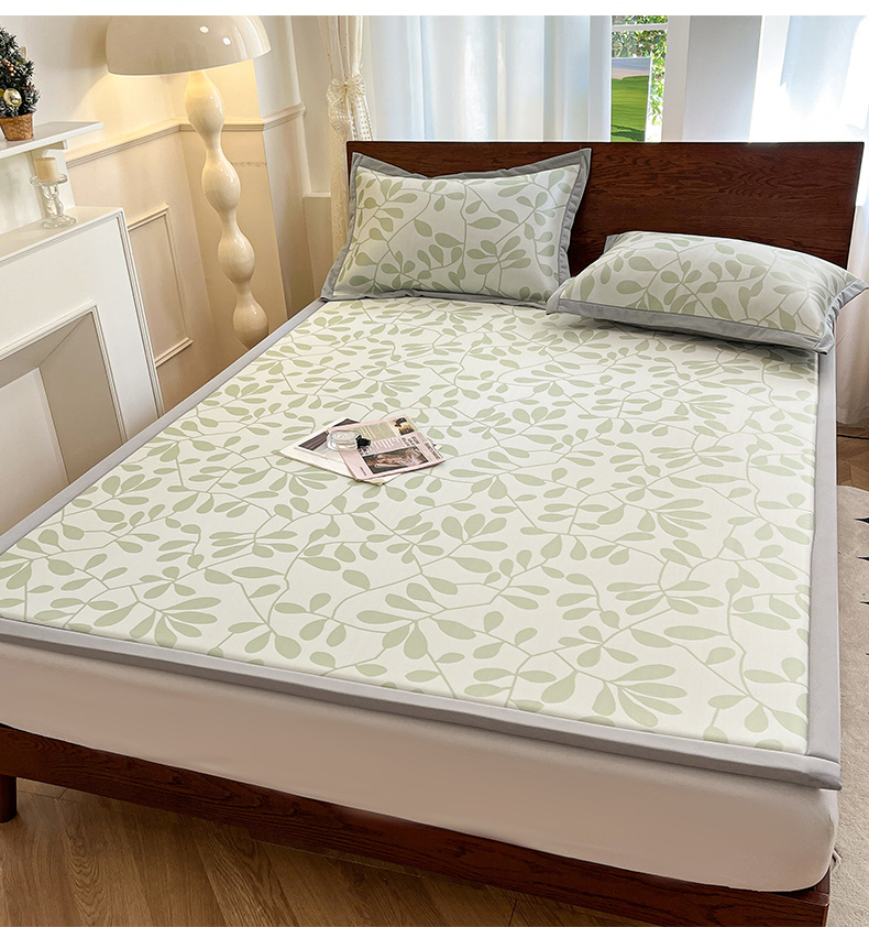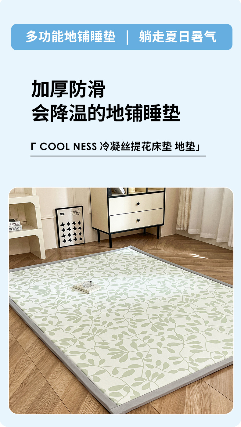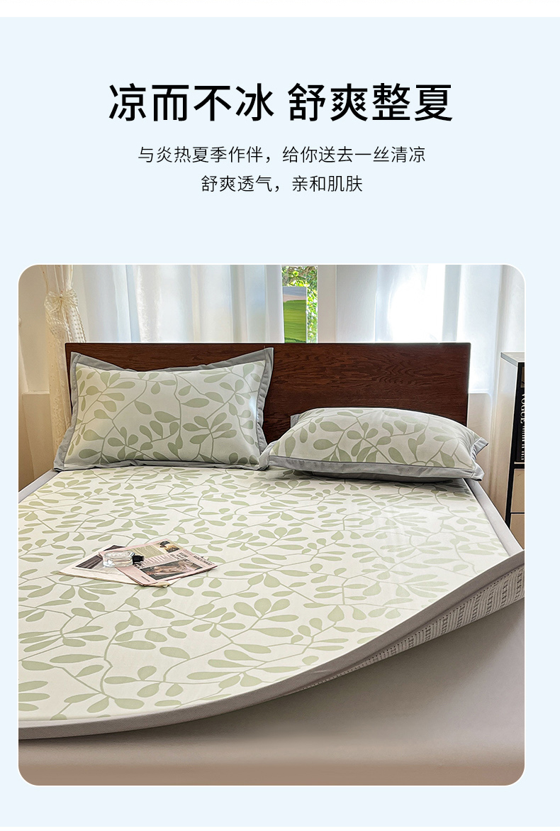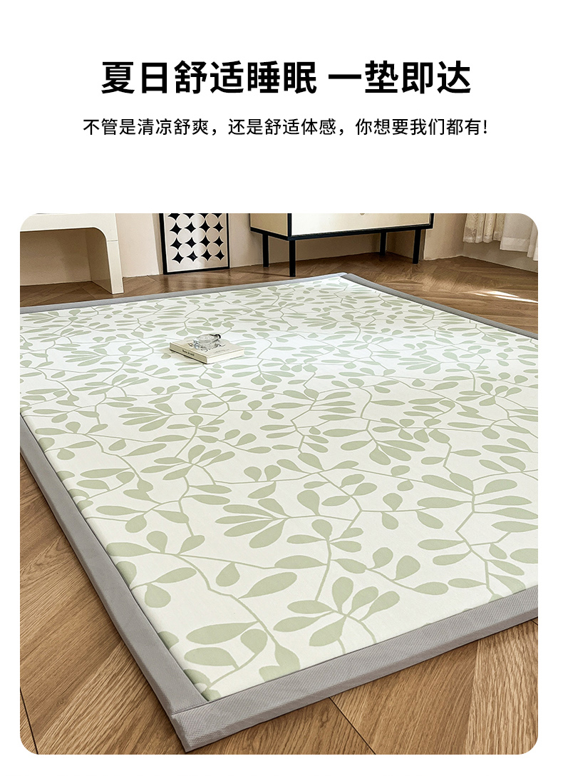 宜代光年 2025新款冷凝丝提花凉席多功能地垫 凉感叶繁床垫-绿