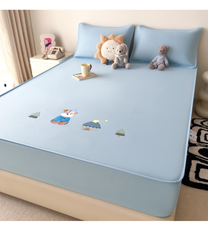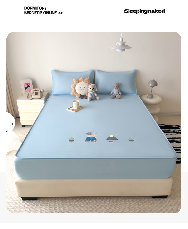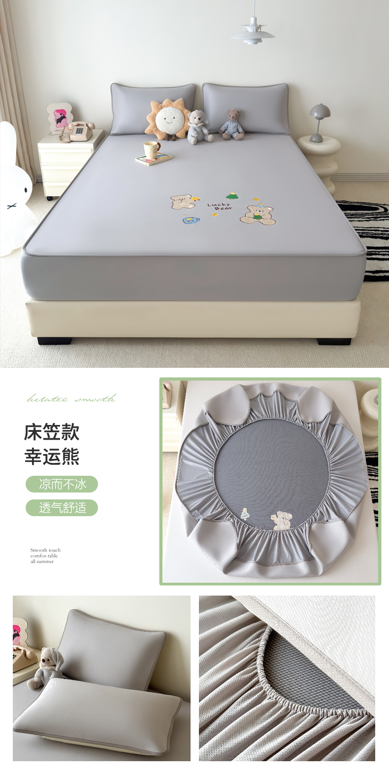 九花鹿2024新款A类大版碳光冰丝凉席床笠款三件套四件套,大版床笠款-熊宝贝