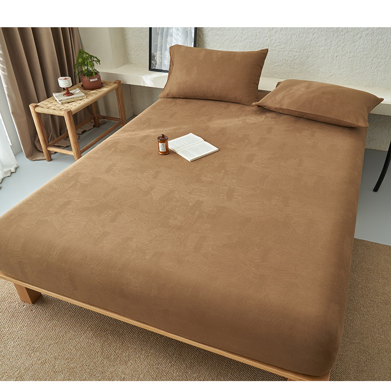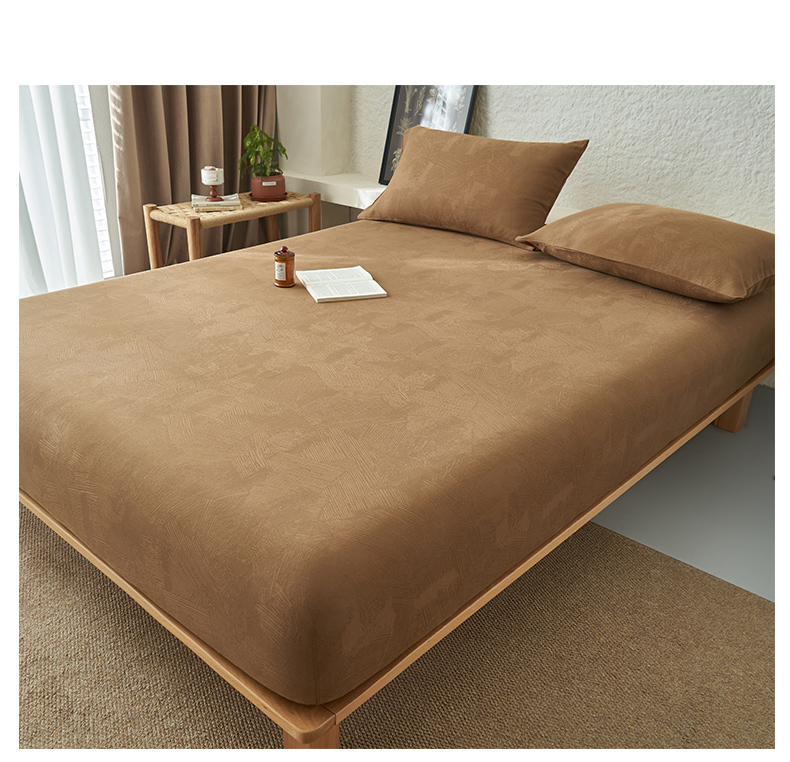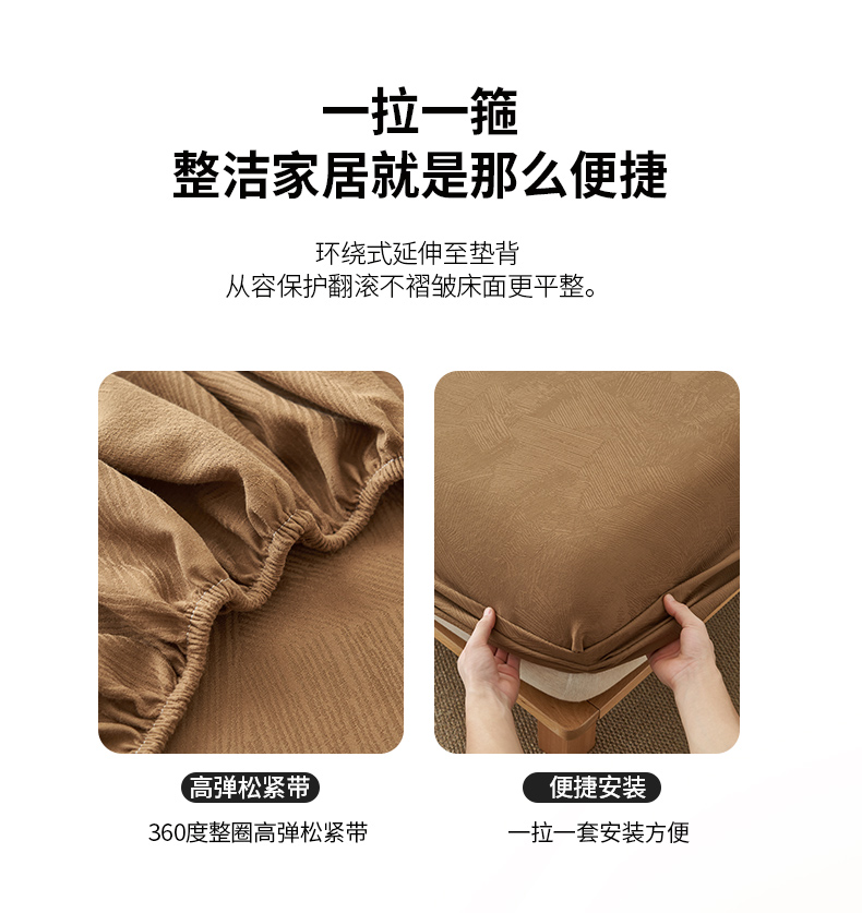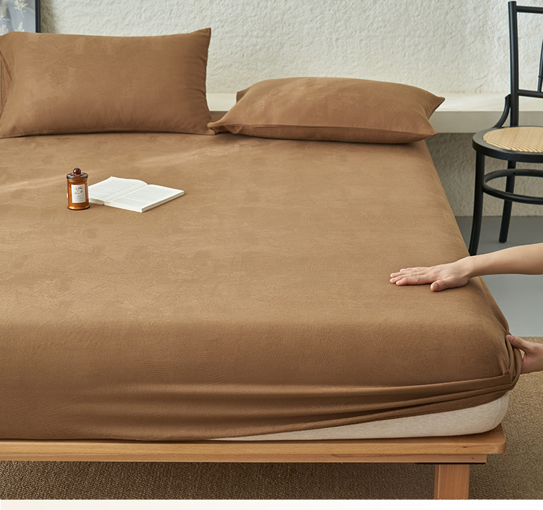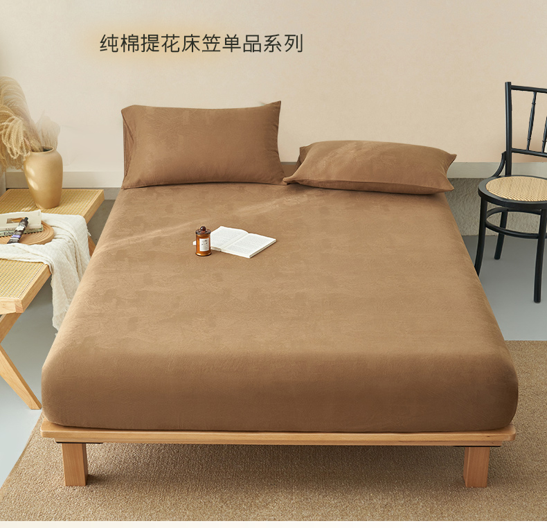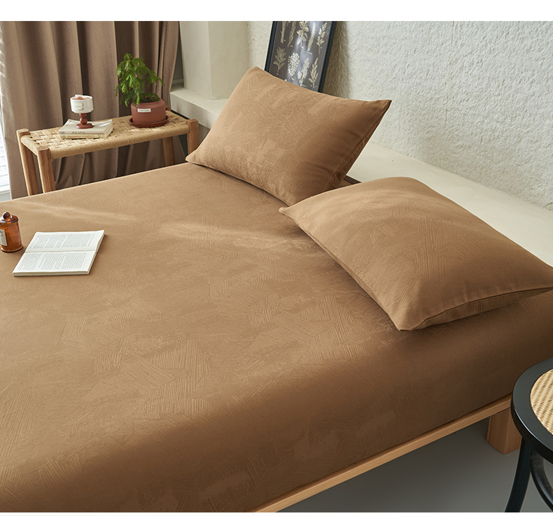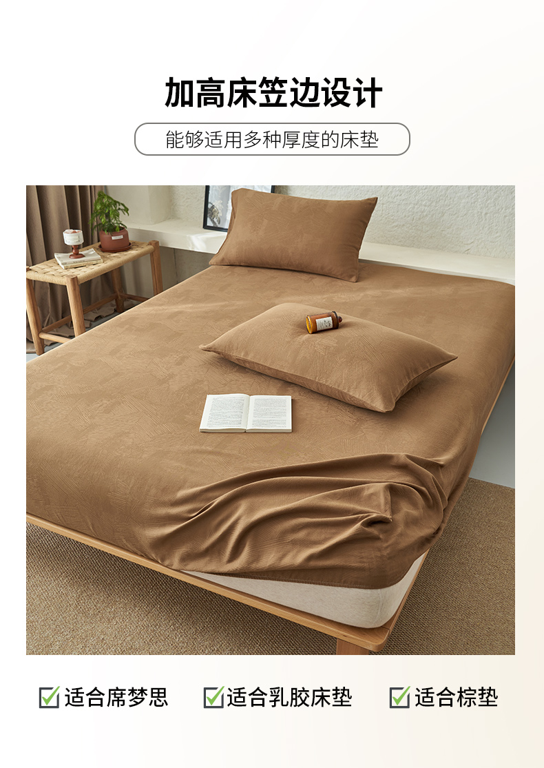 • 91家纺网 家纺一手货源 找家纺 早晨家纺 2025新款肌理纹纯棉提花床笠 肌理纹床笠-棕色