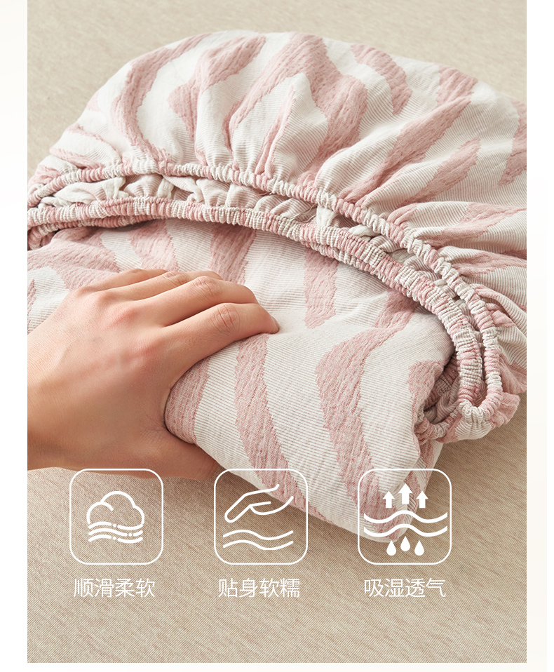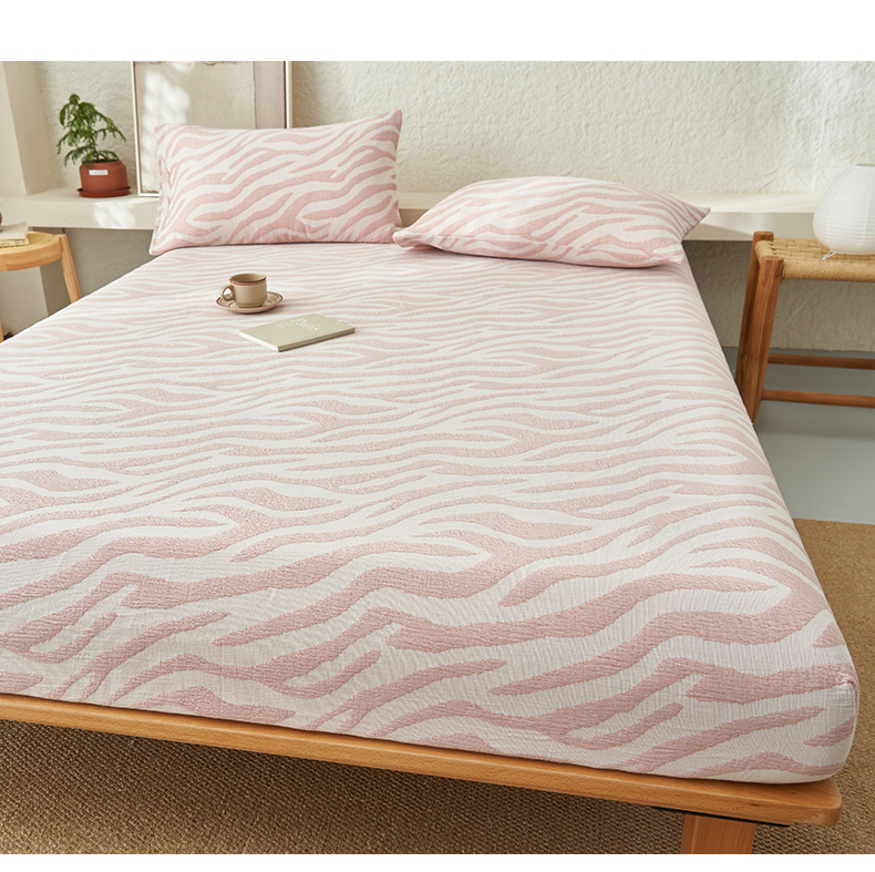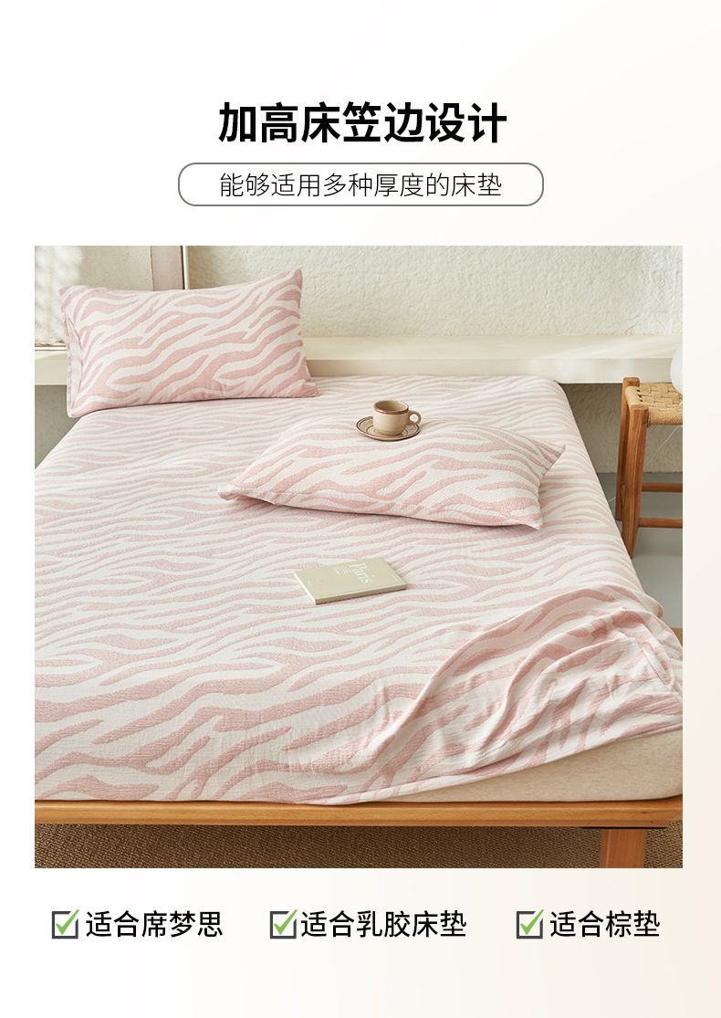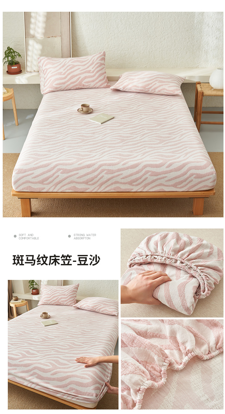 • 91家纺网 家纺一手货源 找家纺 早晨家纺 2025新款三层纱纯棉提花床笠 斑马纹床笠-豆沙