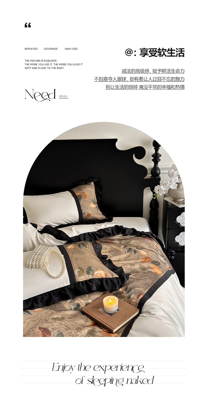 (总)帝王家纺 2025爆款双面水洗天丝印花冰丝四件套夏季床单被套-香叶 礼盒包装