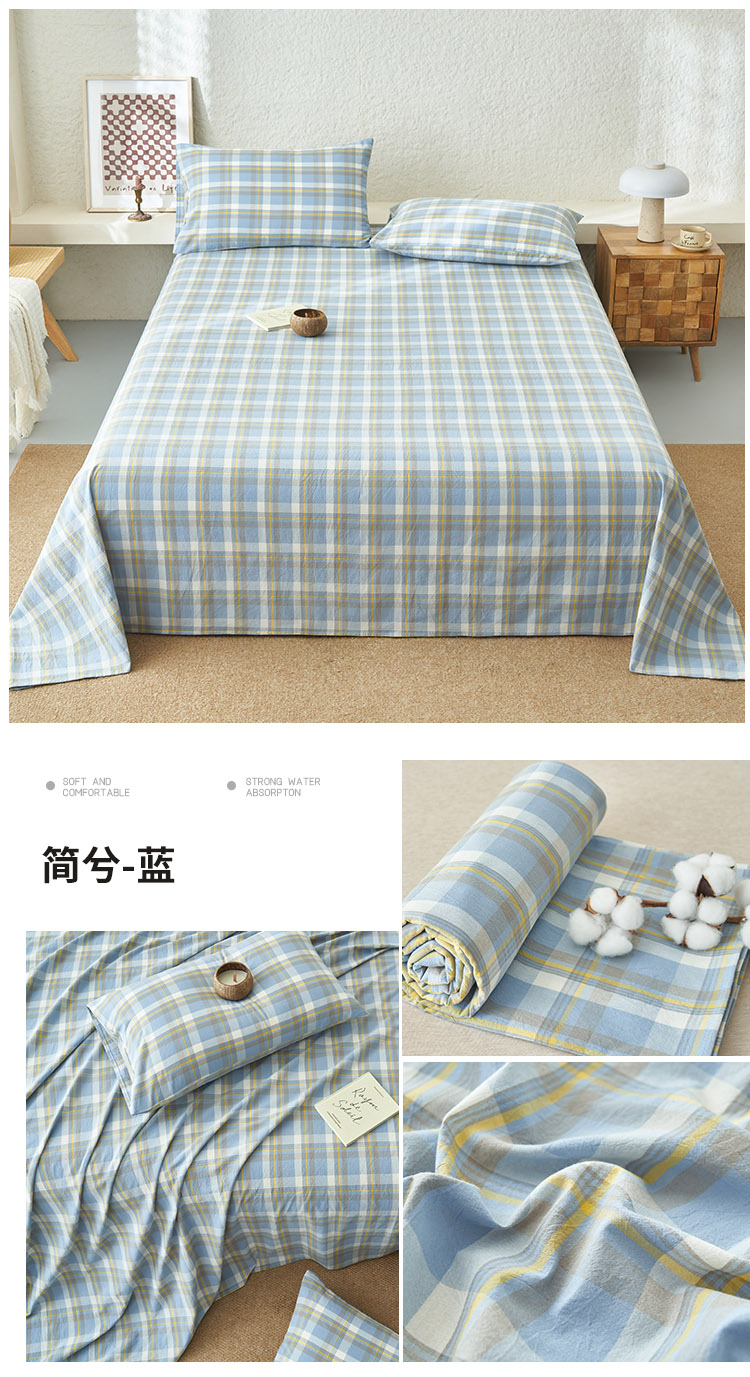 • 91家纺网 家纺一手货源 找家纺 早晨家纺 2025新款色织纯棉水洗棉床单 简兮-蓝