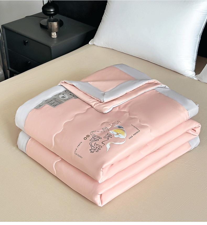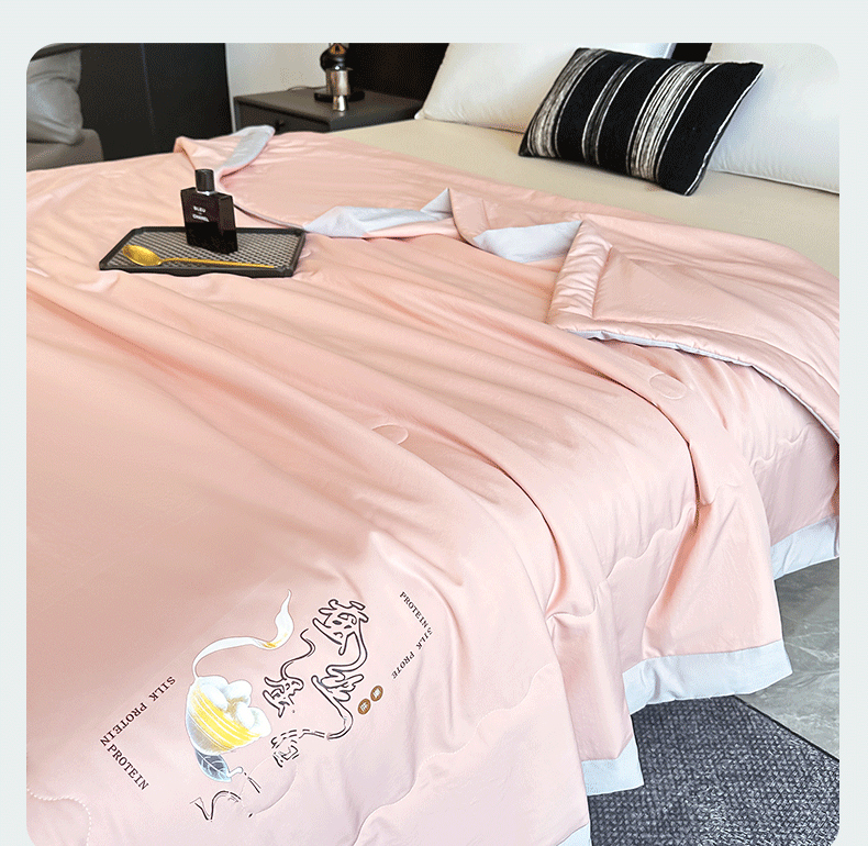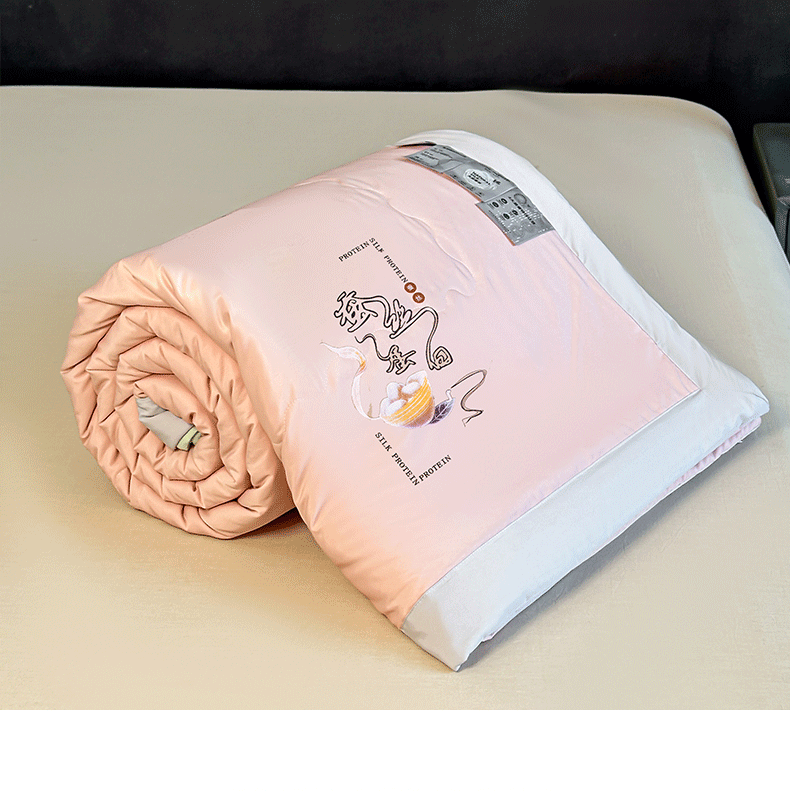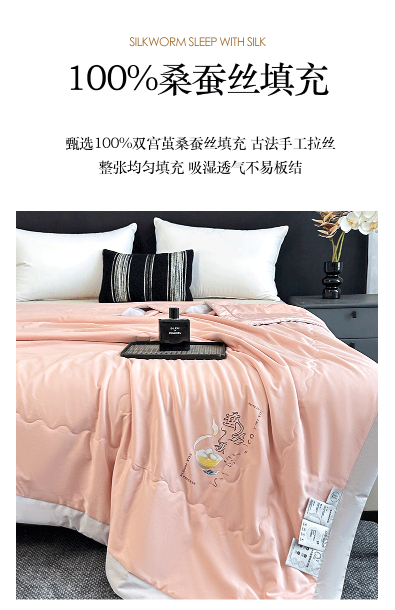2025新款手工全棉80s 高端双宫茧桑被 樱花粉,樱花粉