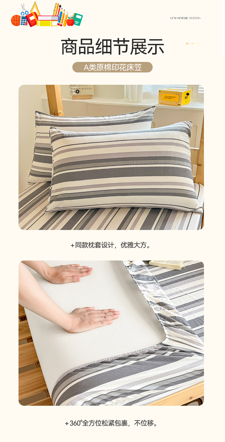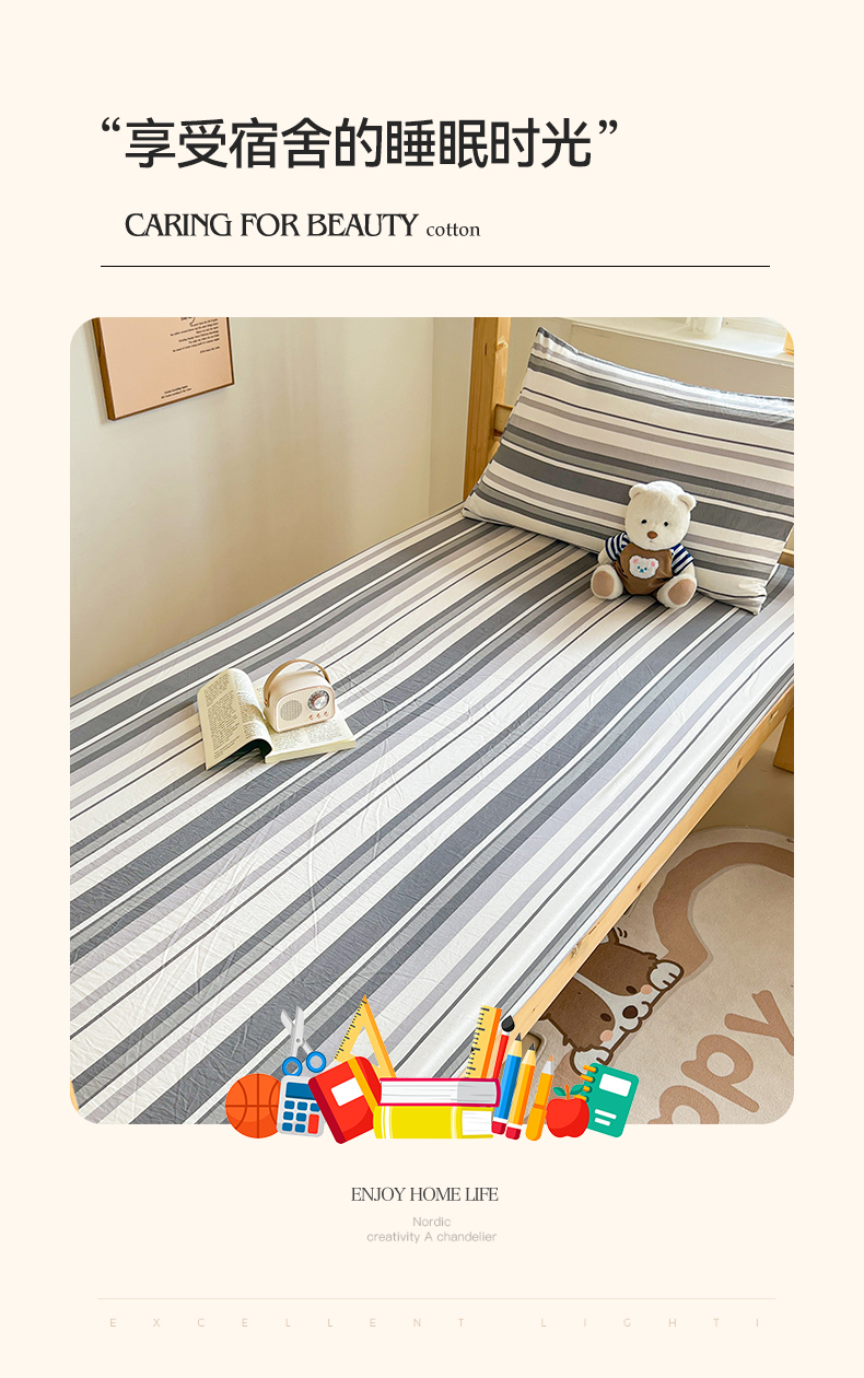 多品家纺 2025春夏新款超柔水洗棉学生宿舍床笠 墨尔本