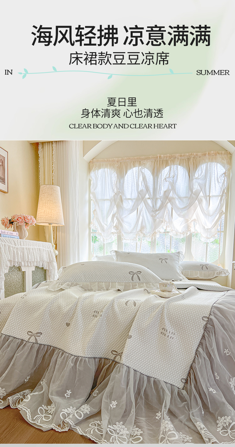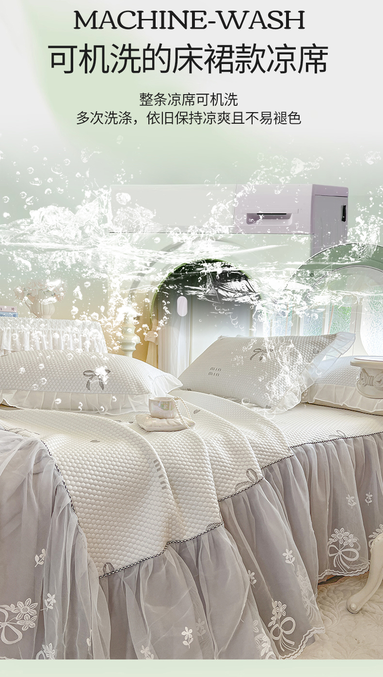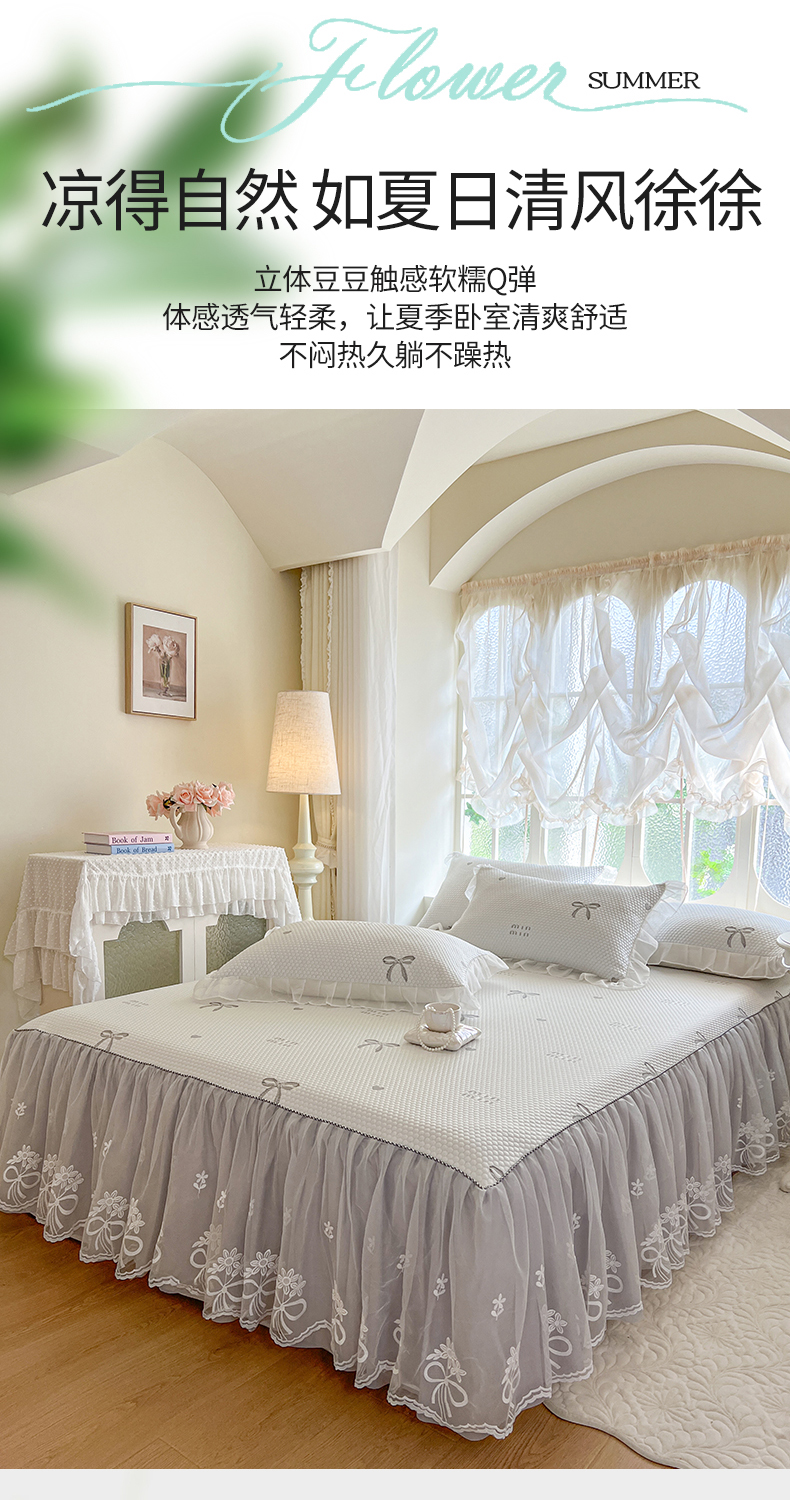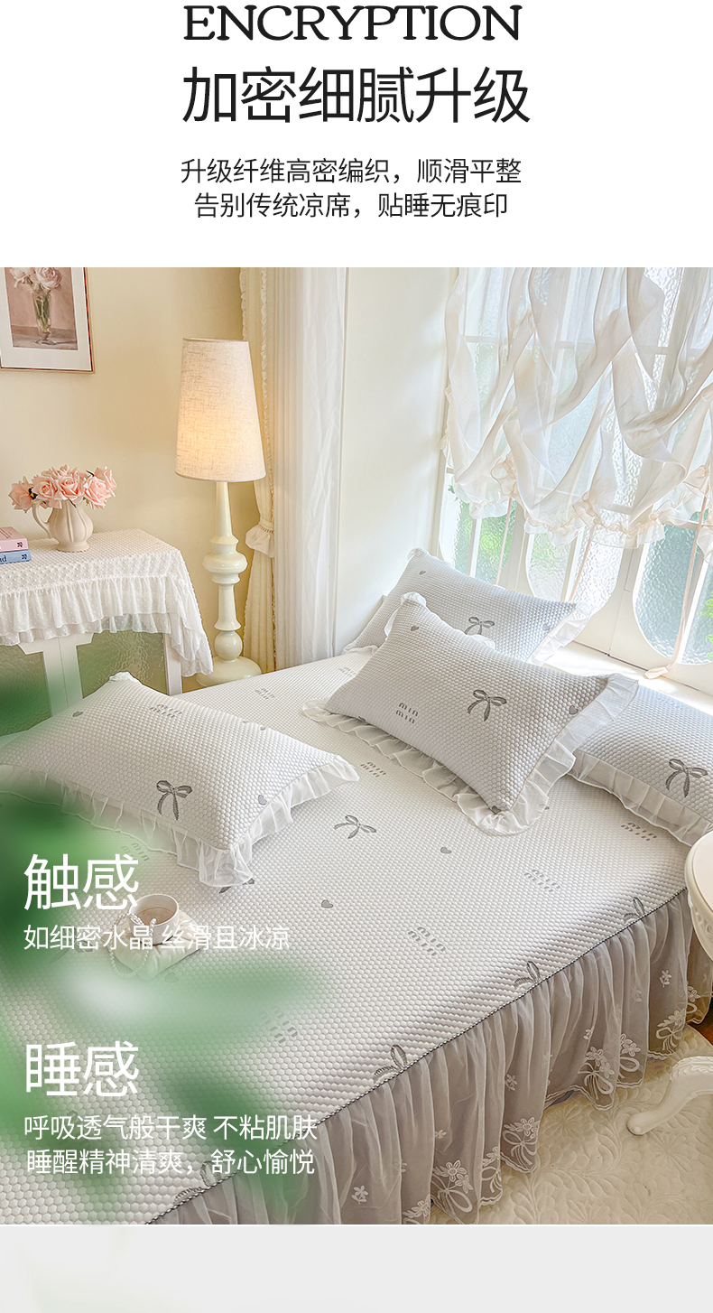 商品名称:网红馆(ck家纺) 2025新款床裙款豆豆凉感席凉席席子-甜心蝴蝶 甜心蝴蝶-灰
