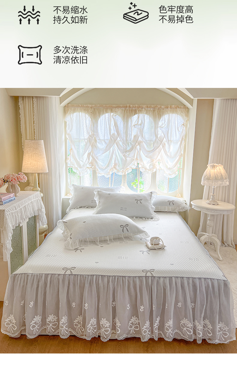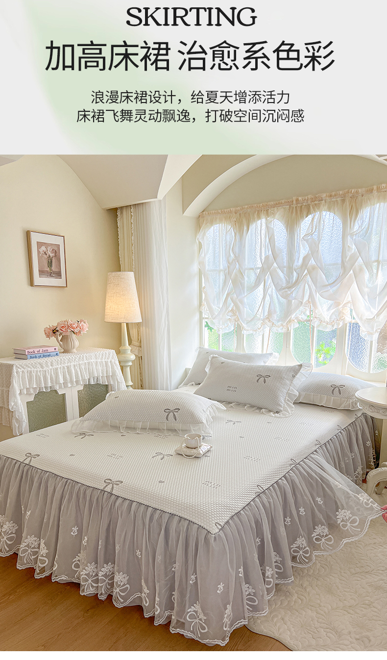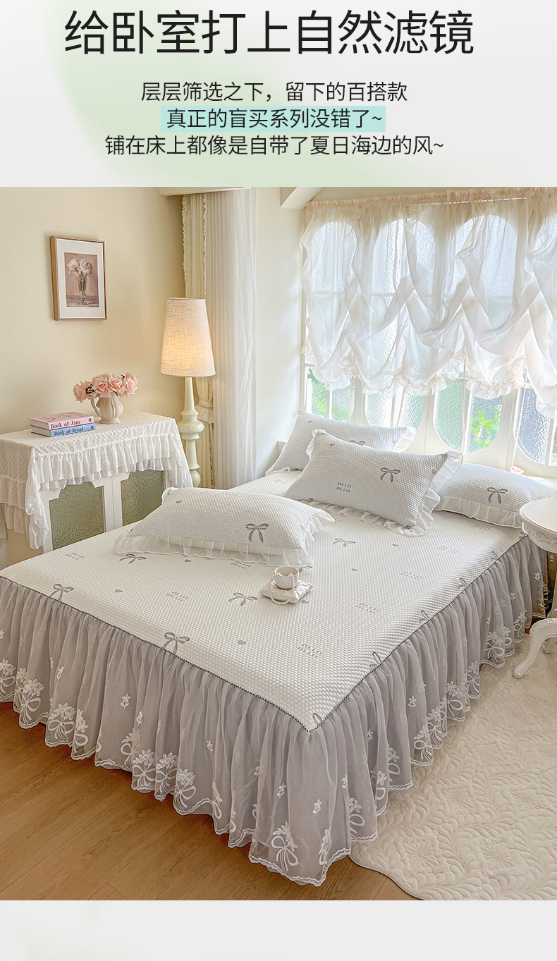 (总)网红馆(ck家纺) 2025新款色织提花牛奶绒床裙四件套-洛丽塔系列,洛丽塔-豆沙,洛丽塔-蓝色,洛丽塔-米色