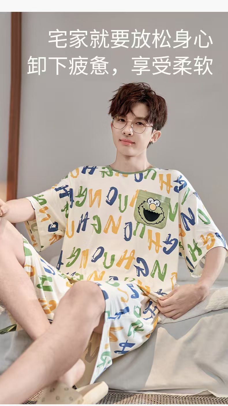 当前位置: 91家纺网 > 商品网购 > 居家日用 > 睡衣/家居服套装 > 洛兰沙家居馆【只代发】【只代发】 2025新款莫代尔凉感柔软男士睡衣夏季薄款卡通动漫大男孩可外穿宽松男款家居服套装 ls1708