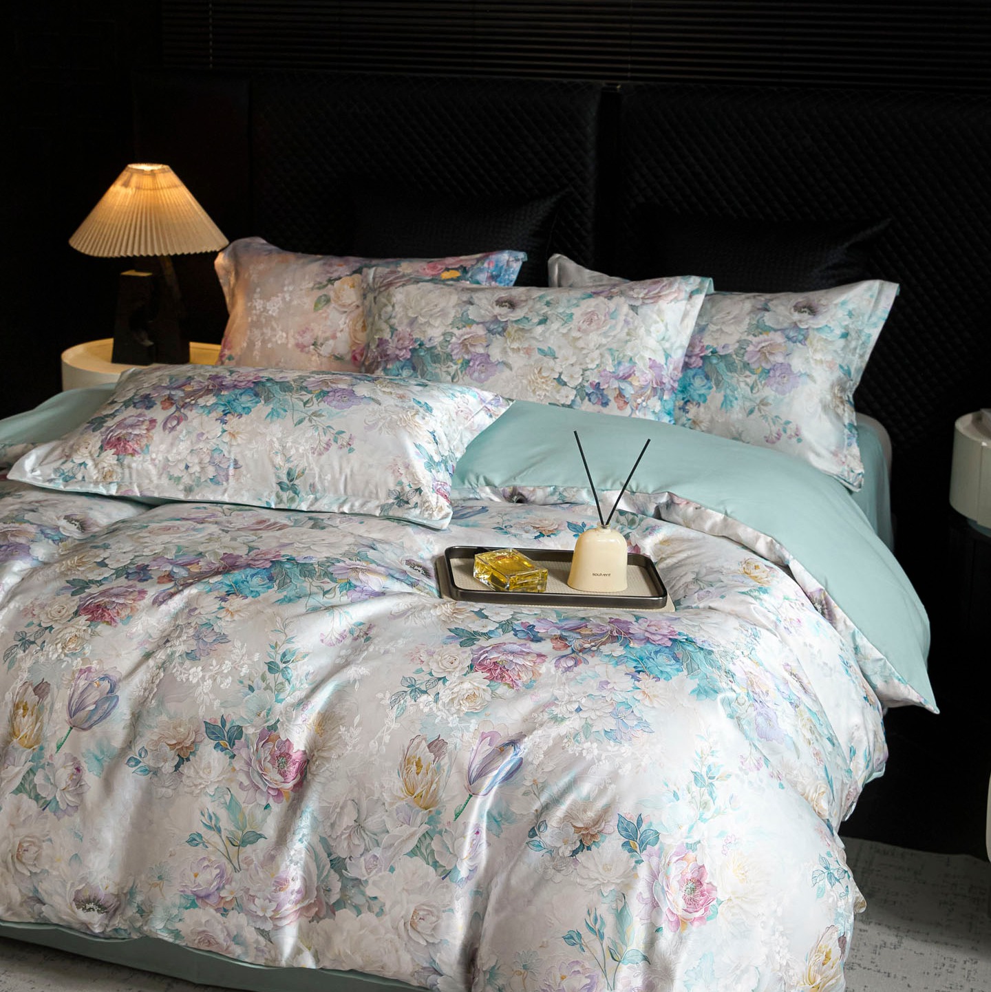 莱欧纳家纺 2025新款轻奢提花印花四件套 梦澜-青