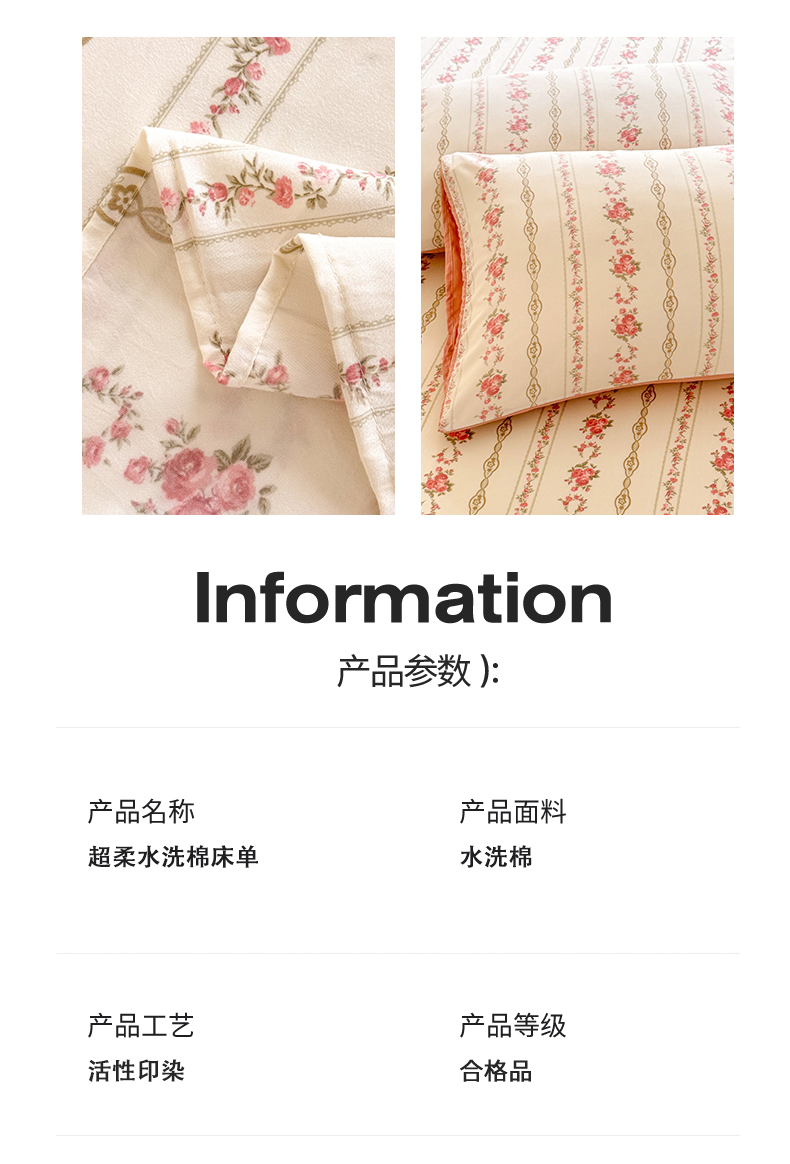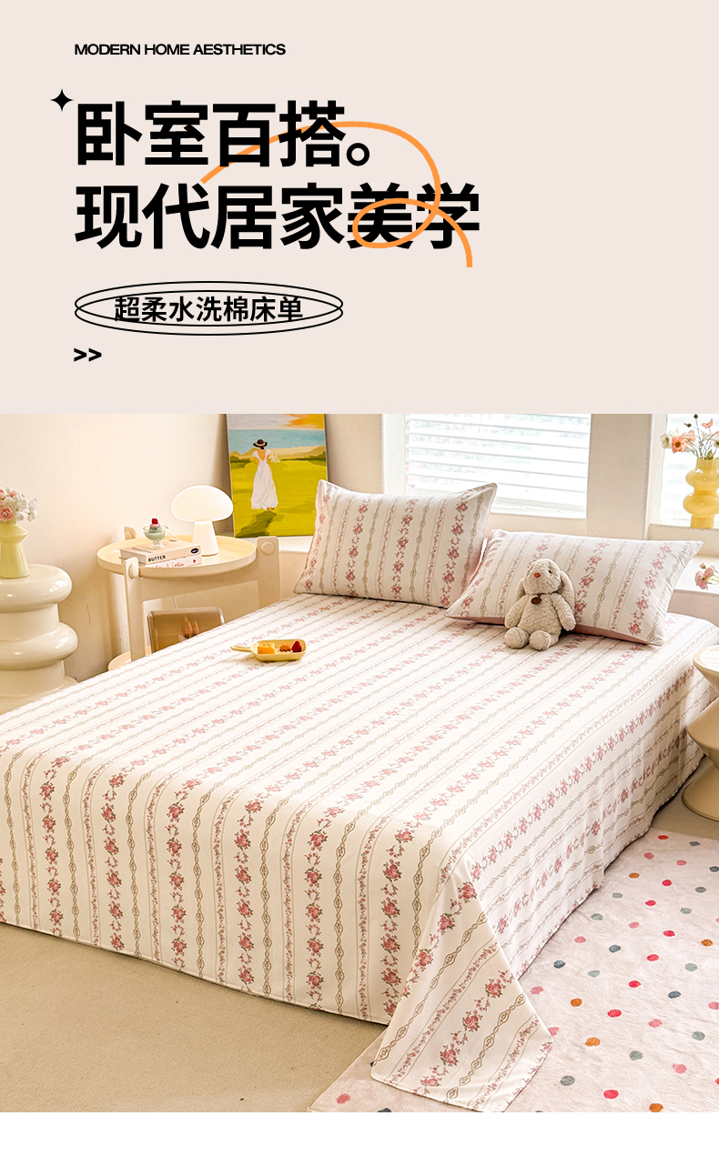 商品名称:(总)多品家纺 2025春夏新款超柔水洗棉单床单 床单单件