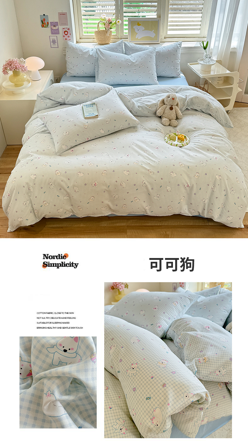 (总)多品家纺 2026新款奶呼呼超柔云感双层纱系列四件套,白露紫,半岛兰格,半岛紫格,豹纹猫咪,粉粉小花,福气满满,花田小狗,欢乐时光,开心狗,棉花兔兔,浅浅春意,桃气兔兔,淘气园,汪星人,小橘狗,熊多多,熊熊空间,学院派,樱桃蓝,樱桃紫