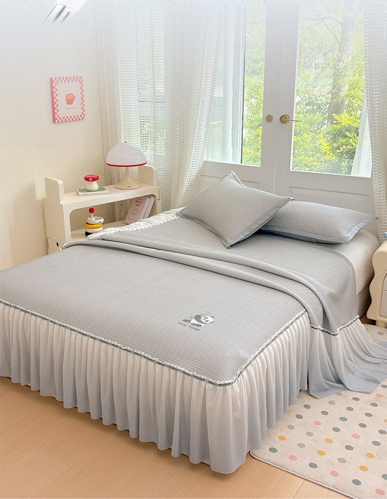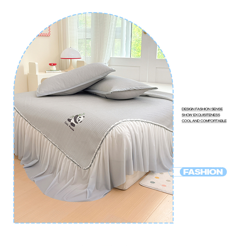商品名称:宜派家纺 2025新款高分子凉感丝床裙凉席三件套系列 可爱熊-灰 床笠款