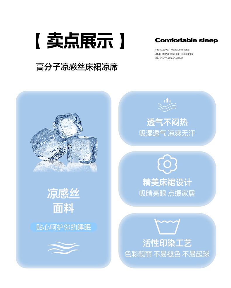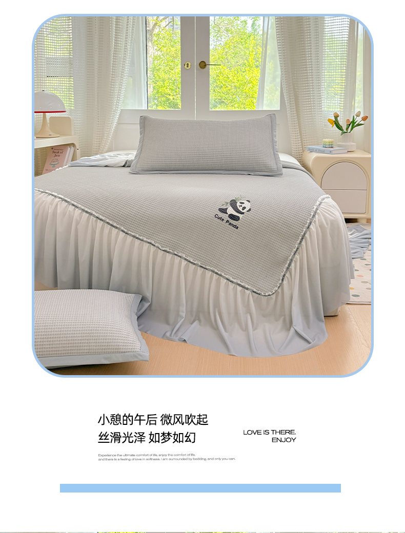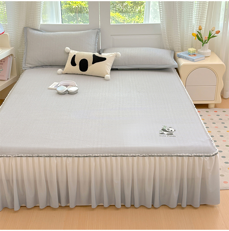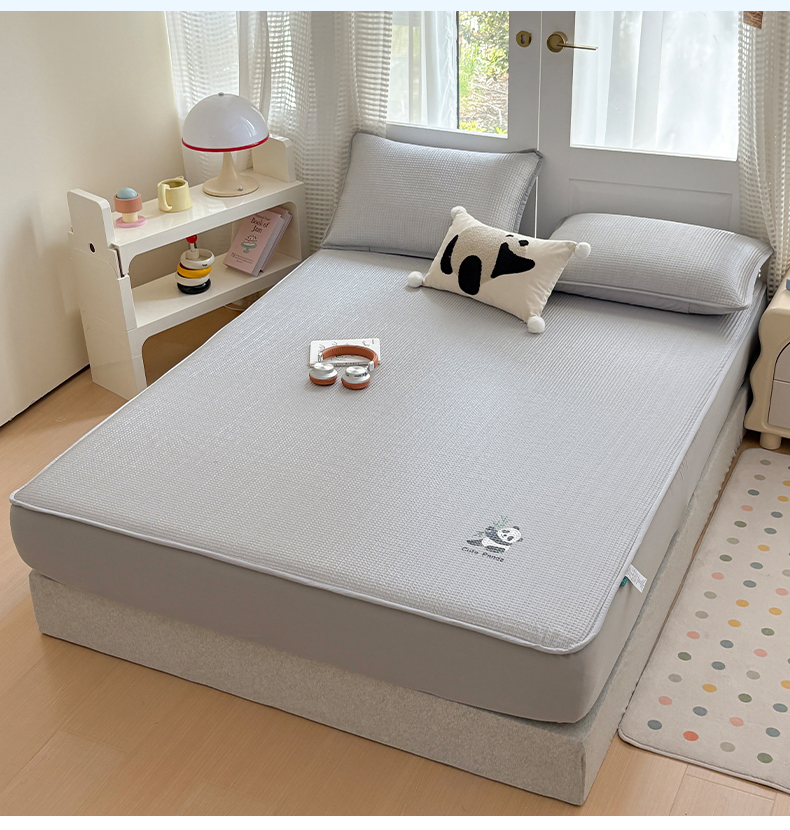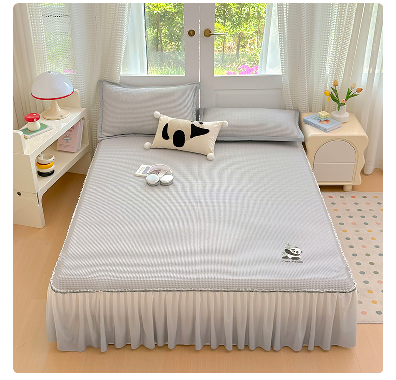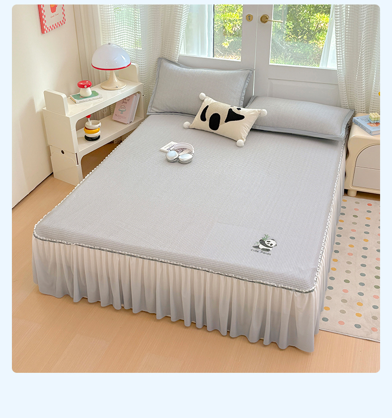 宜派家纺 2025新款高分子凉感丝床裙凉席三件套系列 可爱熊-灰 床笠款
