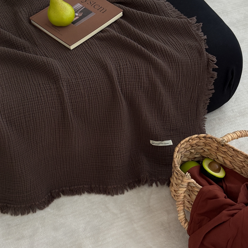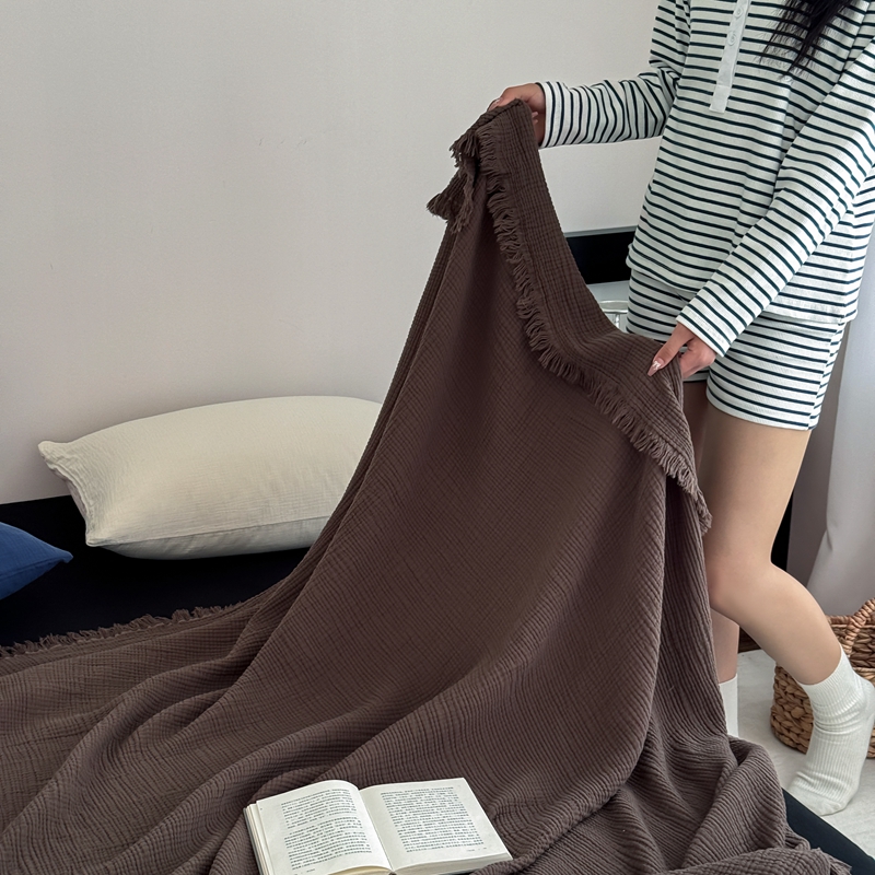 商品名称:山舍家居 2025新款全棉四层纱流苏盖毯第三批 床拍图 陶泥