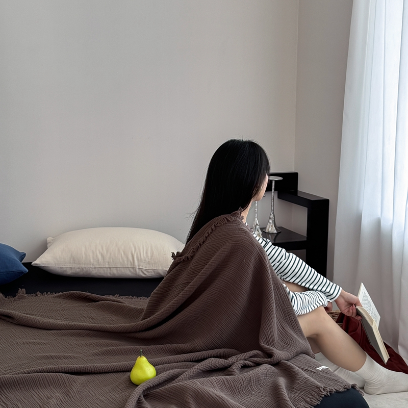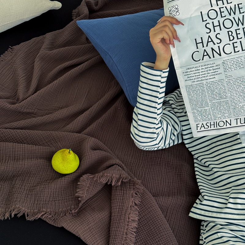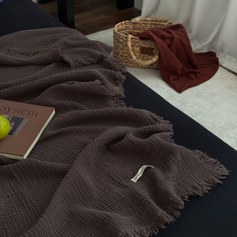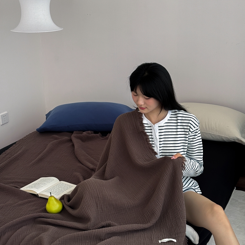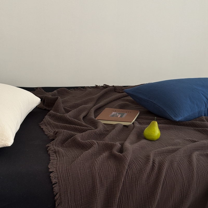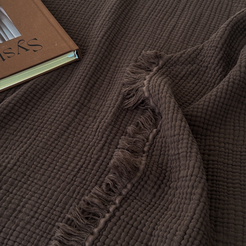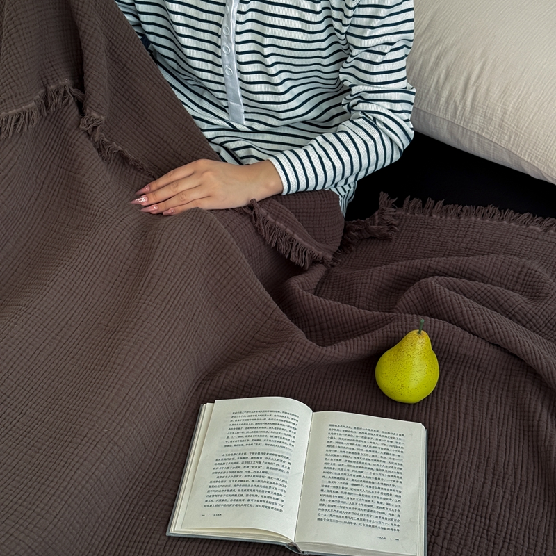 山舍家居 2025新款全棉四层纱流苏盖毯第三批 床拍图 陶泥