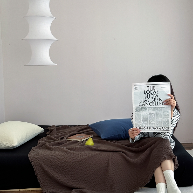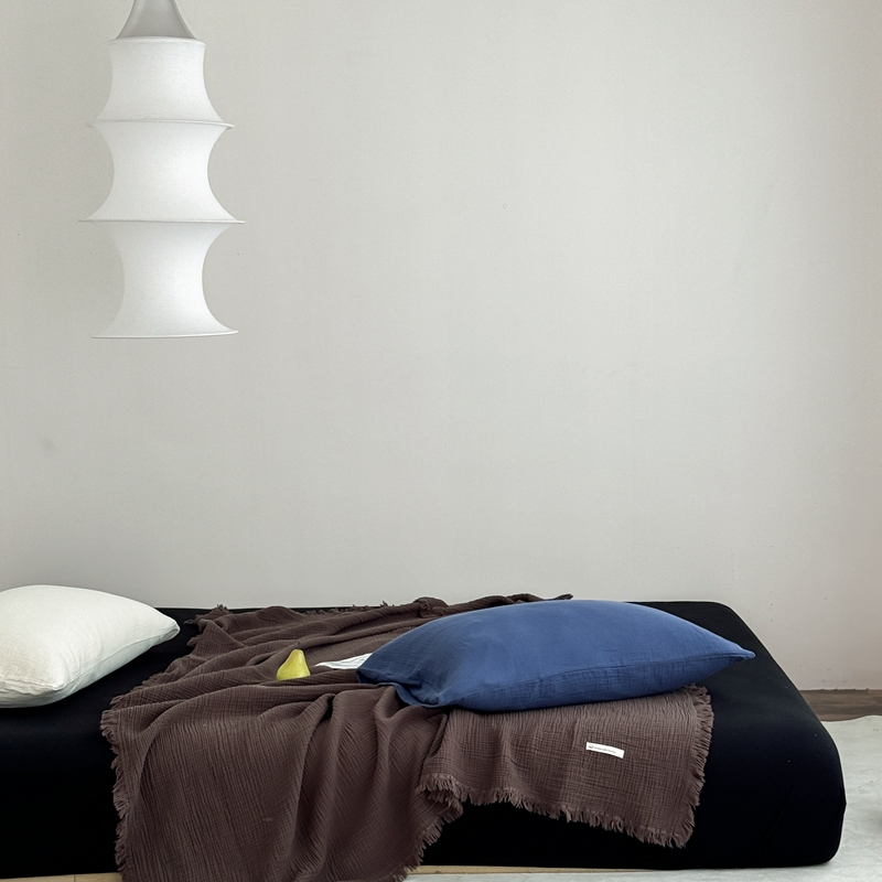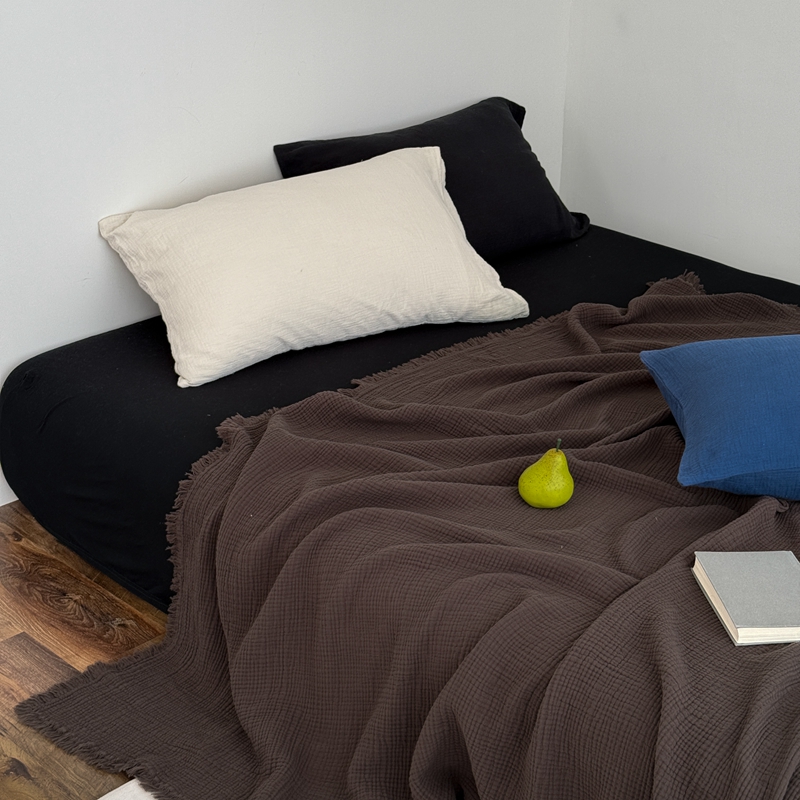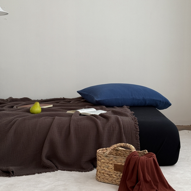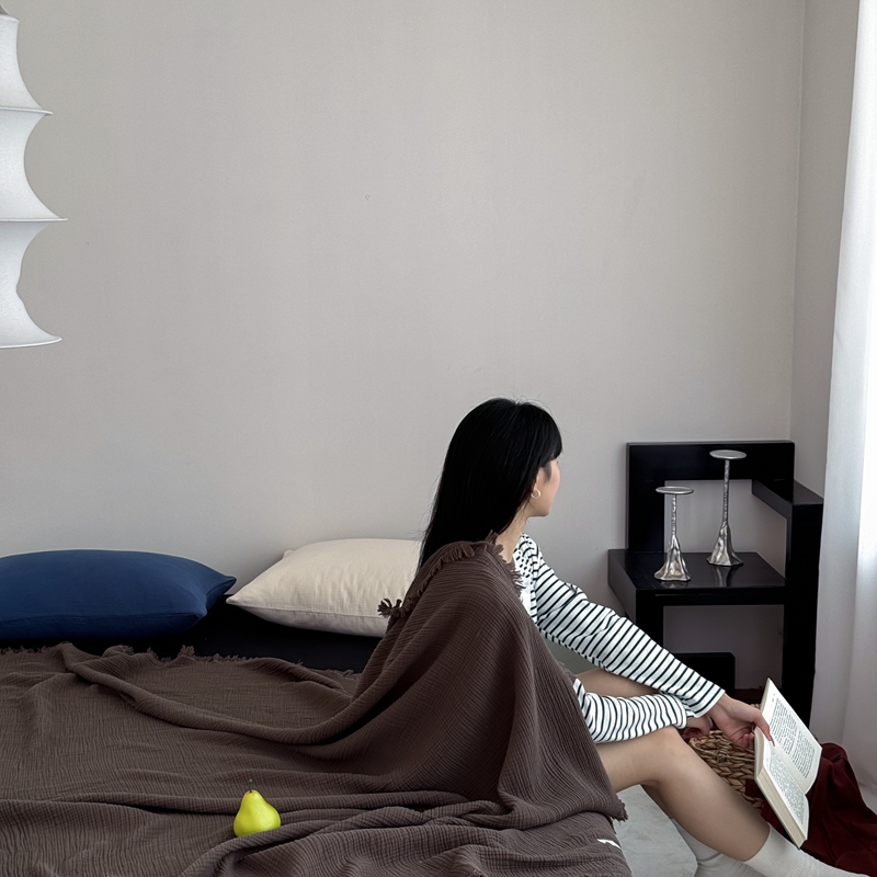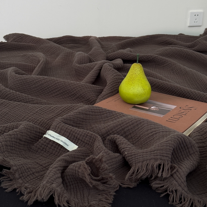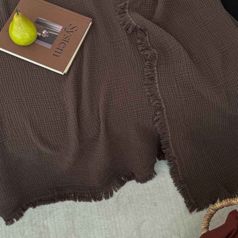 山舍家居 2025新款全棉四层纱流苏盖毯第三批 床拍图 陶泥