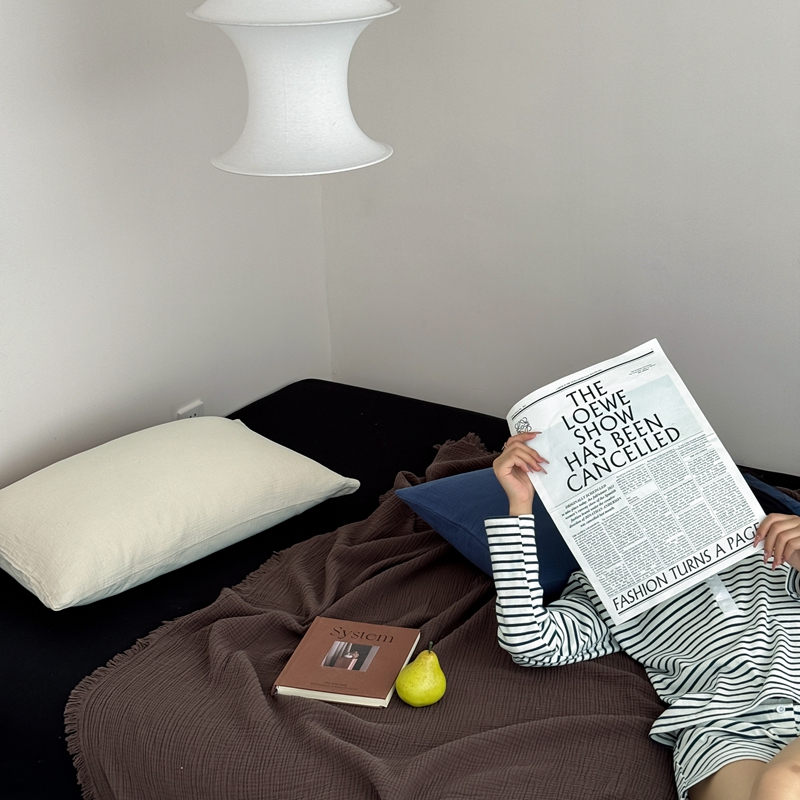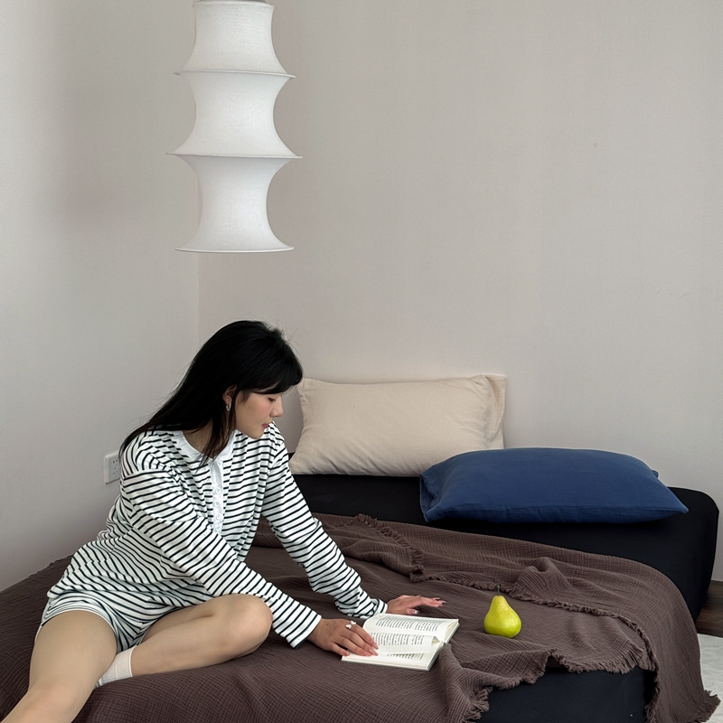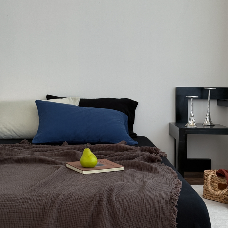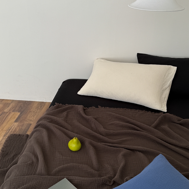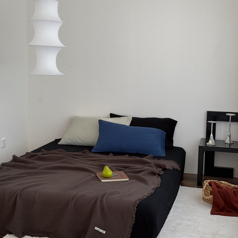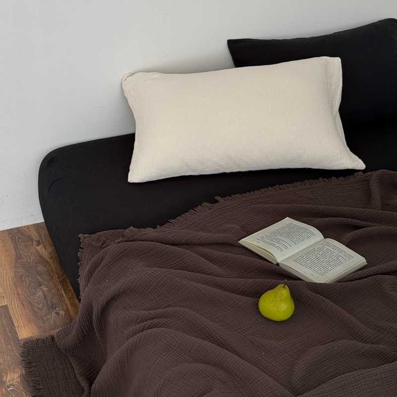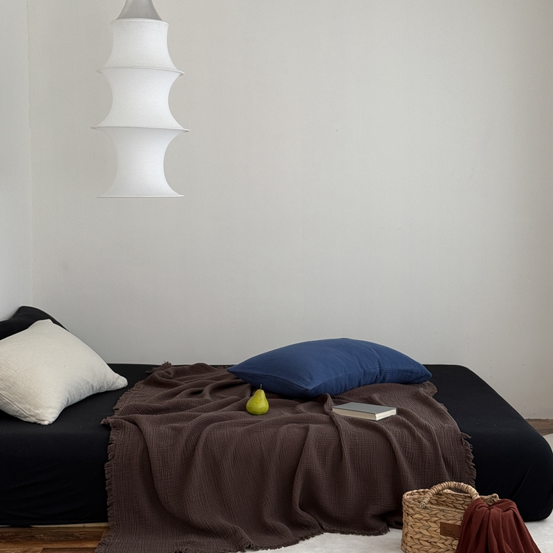 山舍家居 2025新款全棉四层纱流苏盖毯第三批 床拍图 陶泥