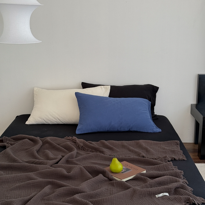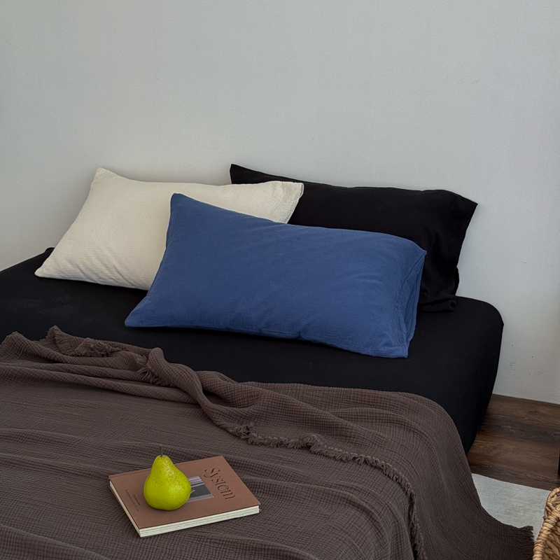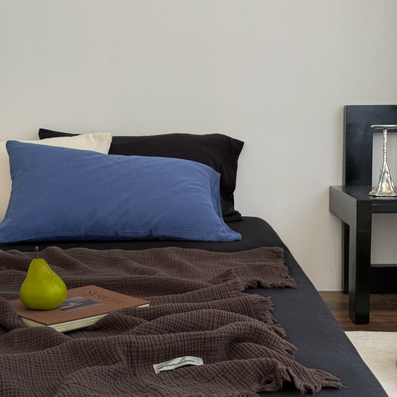 (总)山舍家居 2026新款全棉色织双层皱皱纱色织格子皱纱纯色混搭系列四件套,见春,素澜,愈野,远屿,织界
