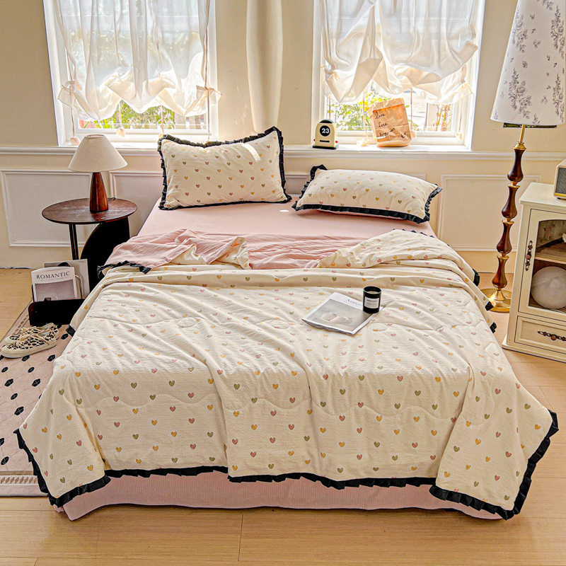 仟网汇 2025新款皱皱纱赫本风花边夏被夏凉被空调被四件套 赫本风-小桃运