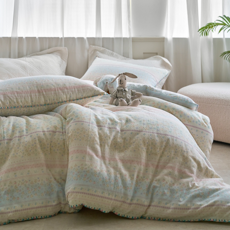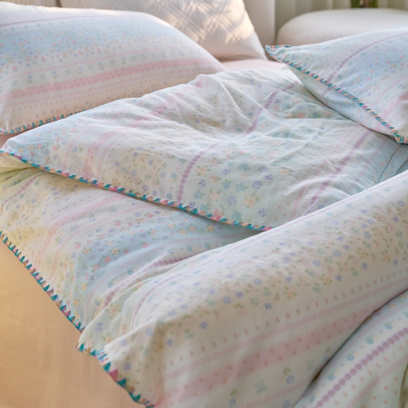 商品名称:洋铭区(原狠狠爱) 2025新款全棉彩边双层四件套 满园春色