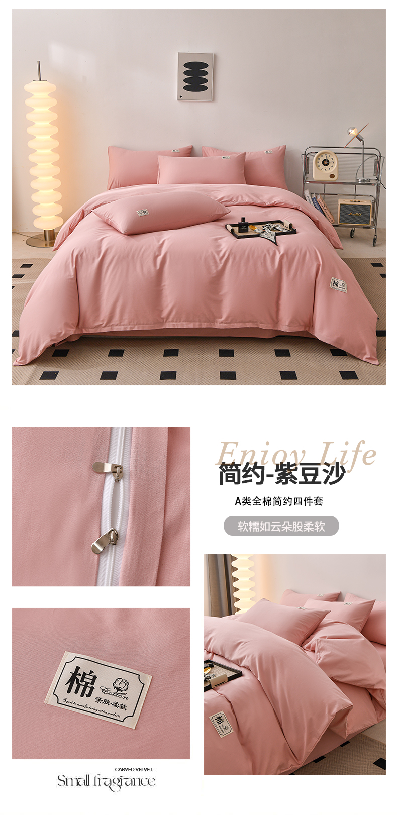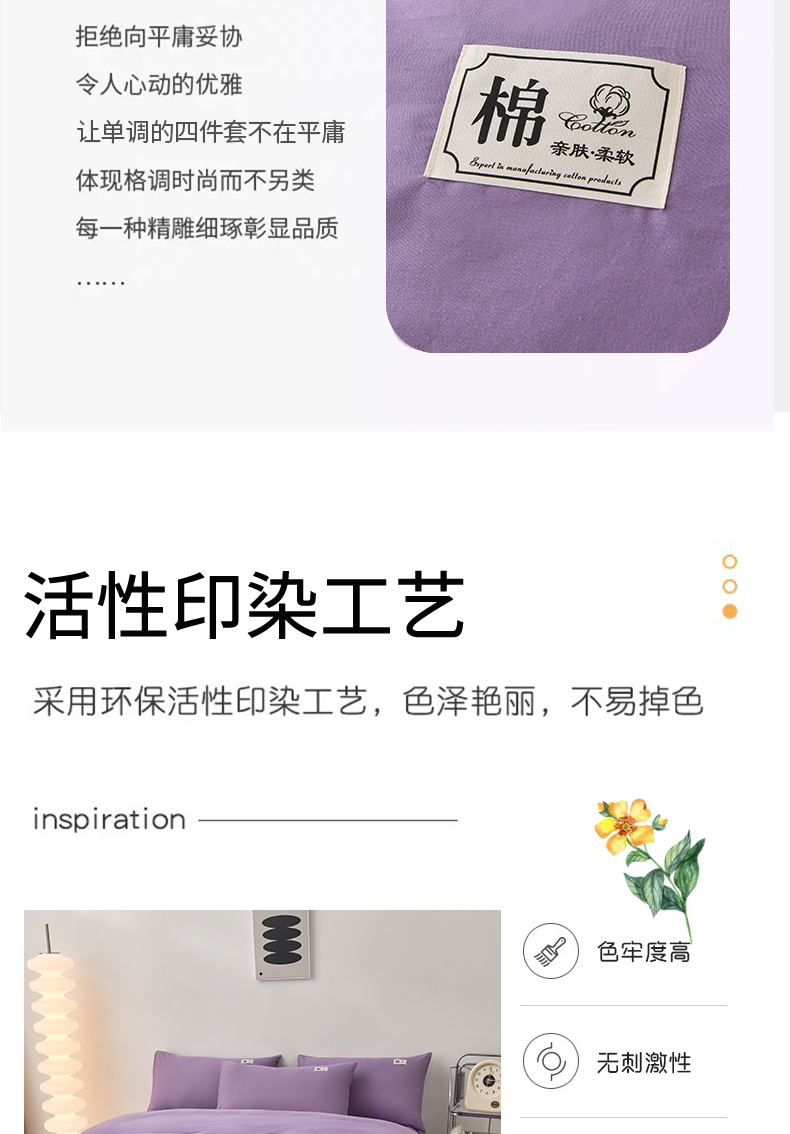 商品名称:宇彬家纺 2025直播新款13374全棉母婴级简约轻奢贴画纯色单被套斜纹贡缎新疆长绒贴标款无印风系列 简约-紫豆沙