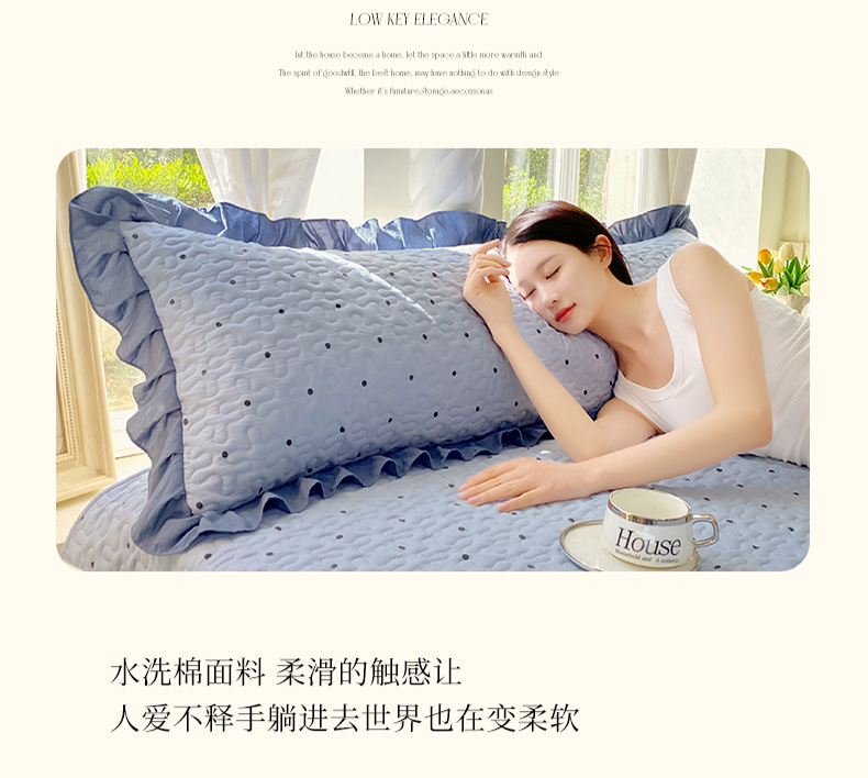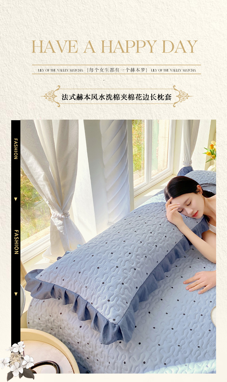 (总)雨彤家纺2025新款赫本风水洗棉花边夹棉枕套双人款