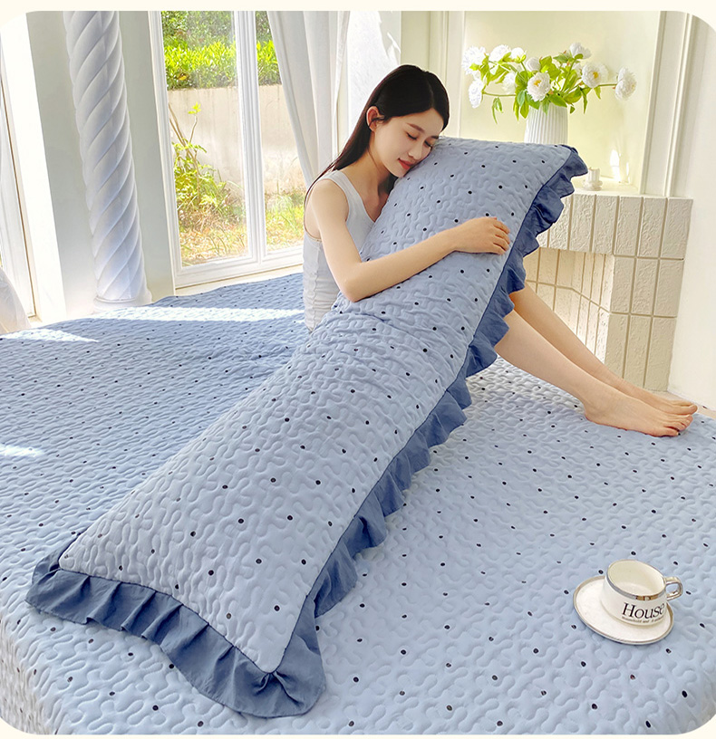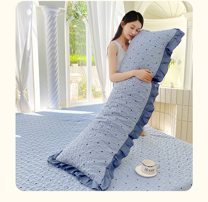 雨彤家纺2025新款赫本风水洗棉花边夹棉枕套双人款 芋艿波波-兰