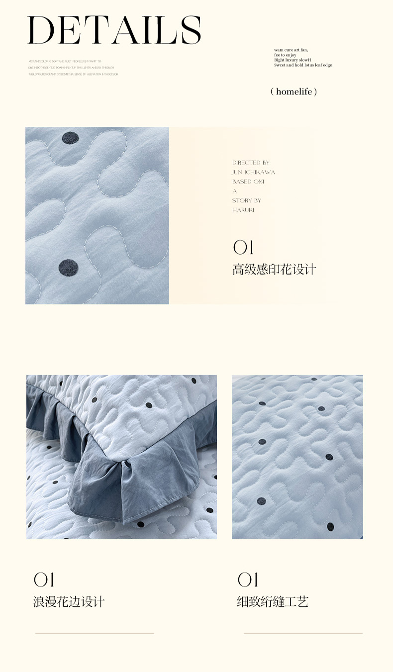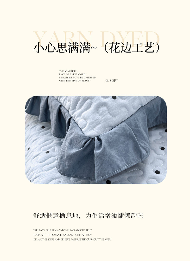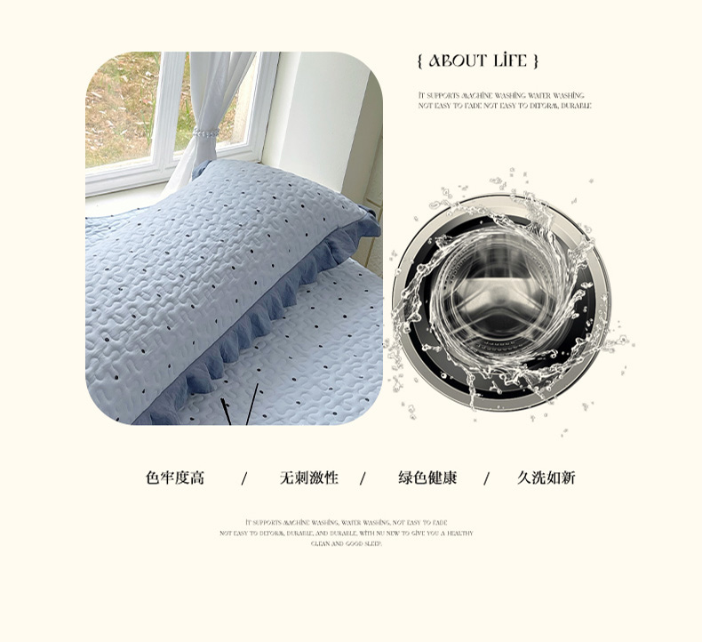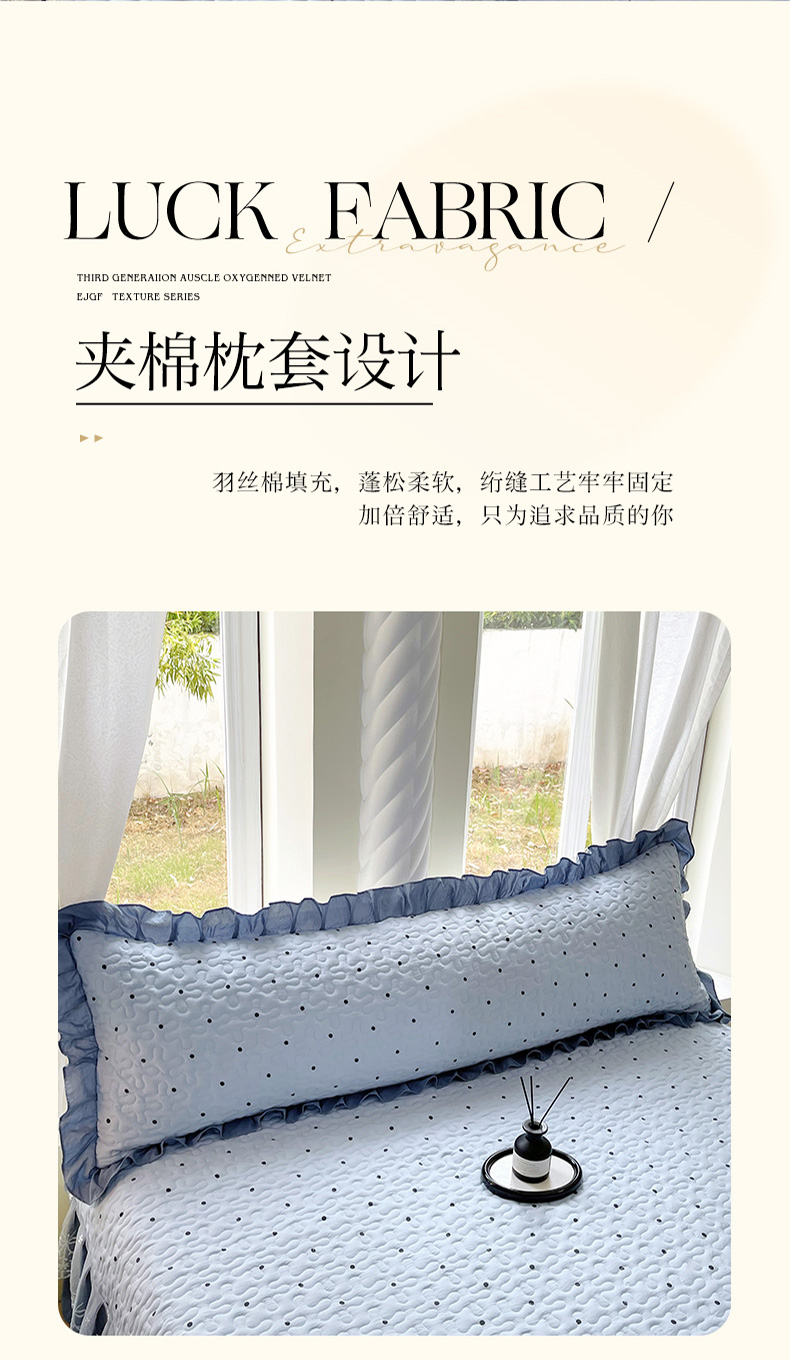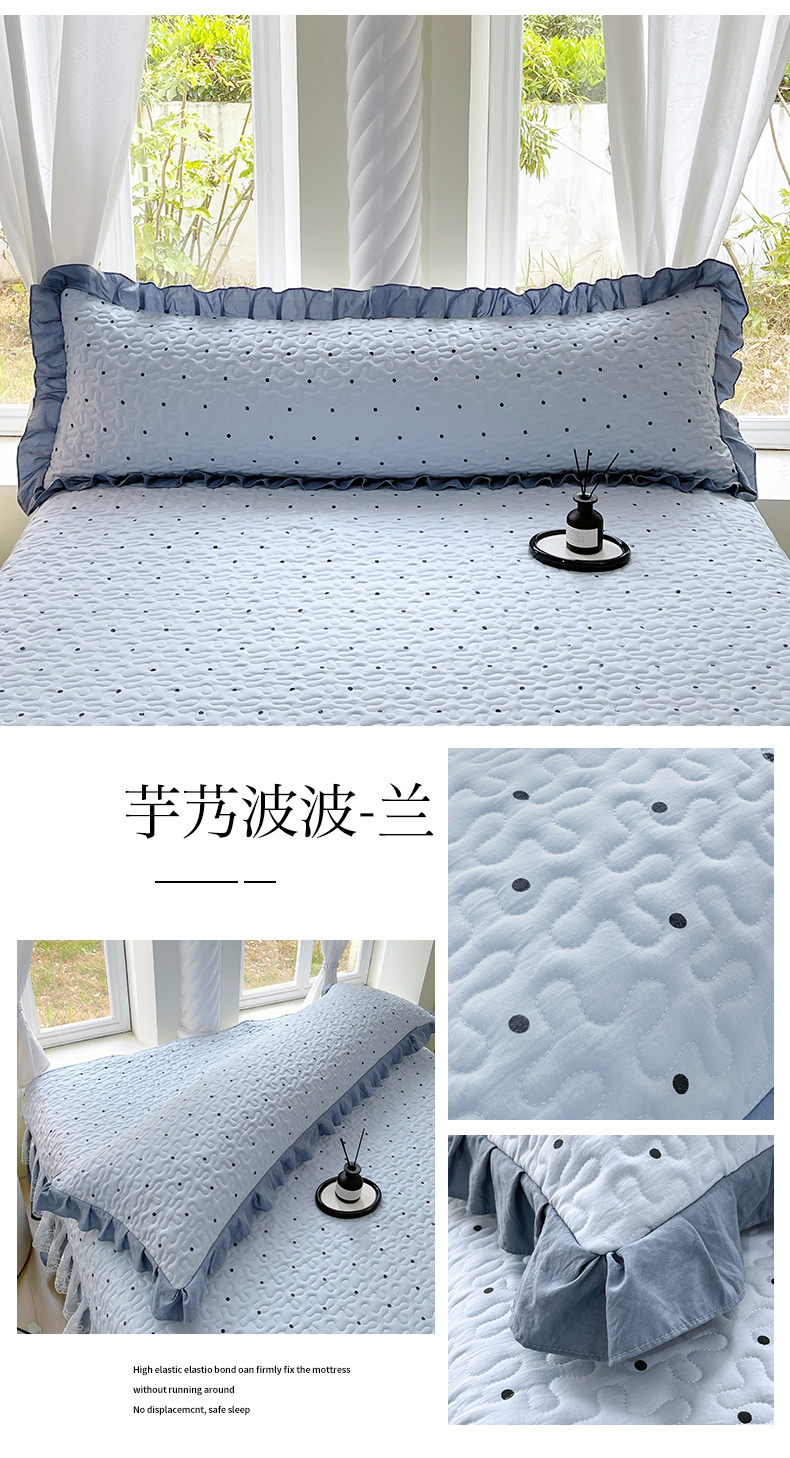 商品名称:雨彤家纺2025新款赫本风水洗棉花边夹棉枕套双人款 芋艿波波-兰
