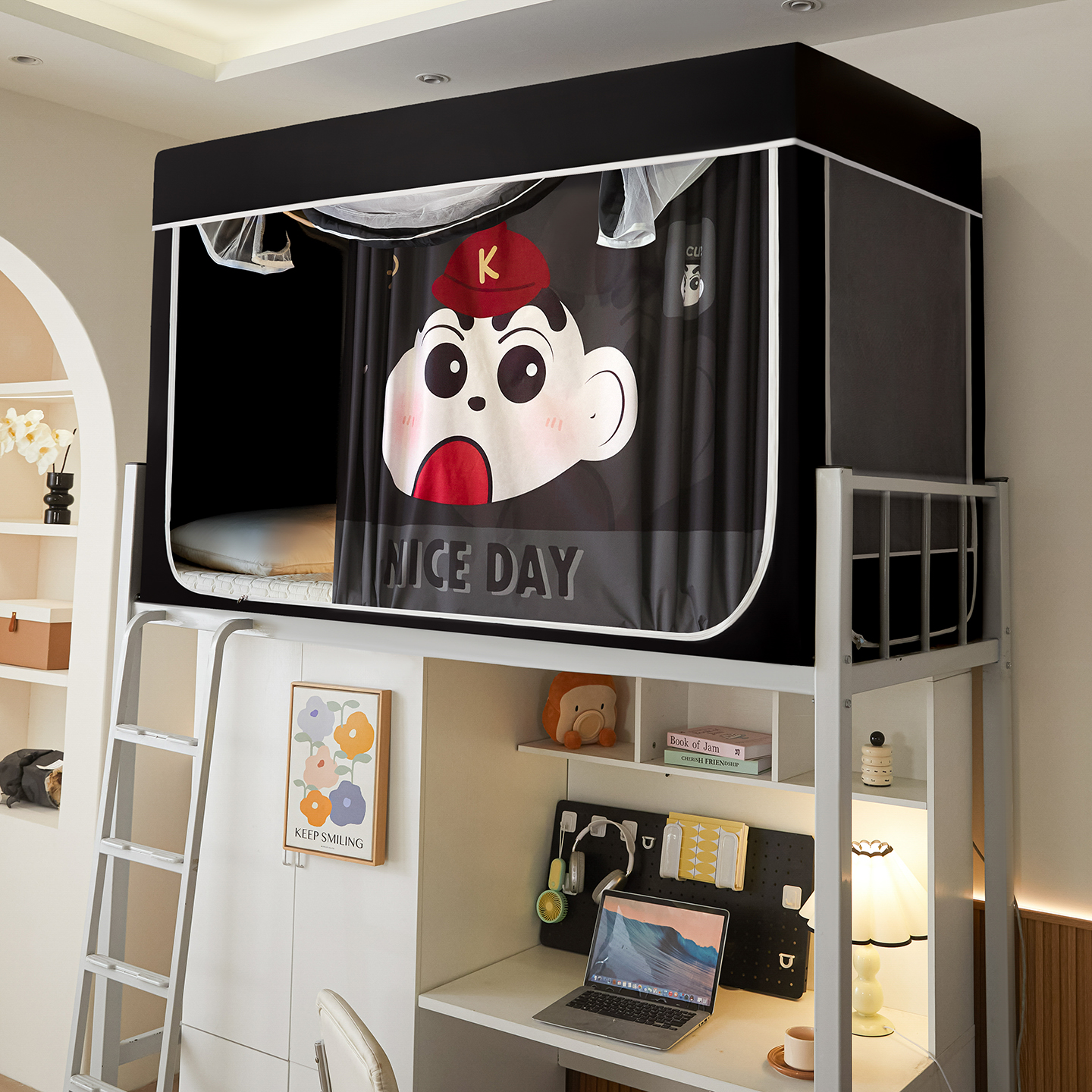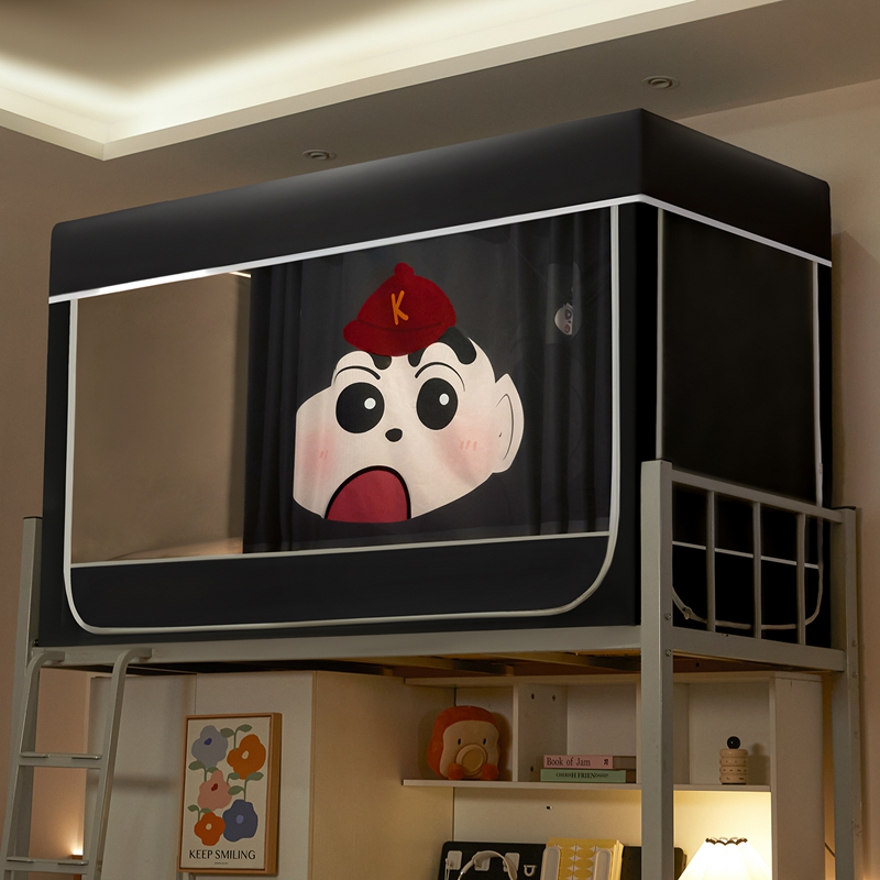 商品名称:冉美家纺 2025新款99五面遮光加厚涂层遮光大版数码印花带靠墙帘卡通学生蚊帐 快乐小新