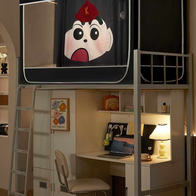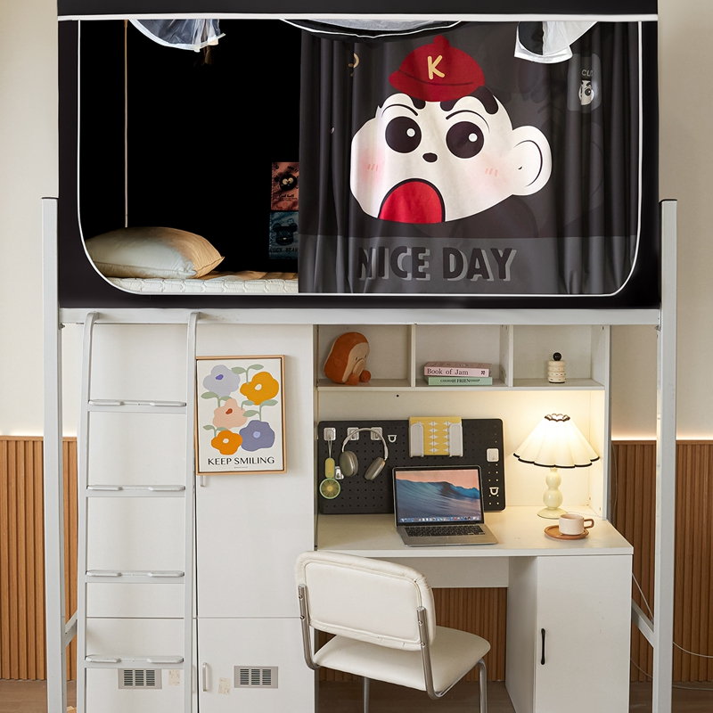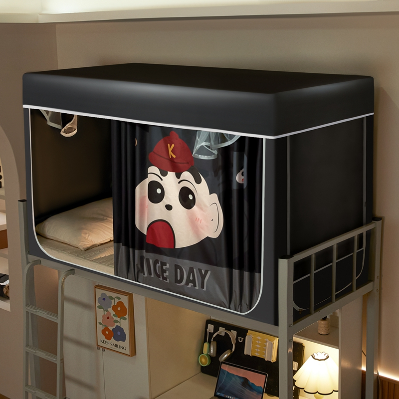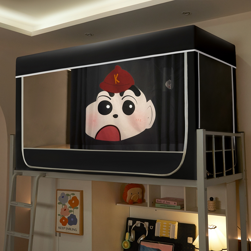 冉美家纺 2025新款99五面遮光加厚涂层遮光大版数码印花带靠墙帘卡通学生蚊帐 快乐小新