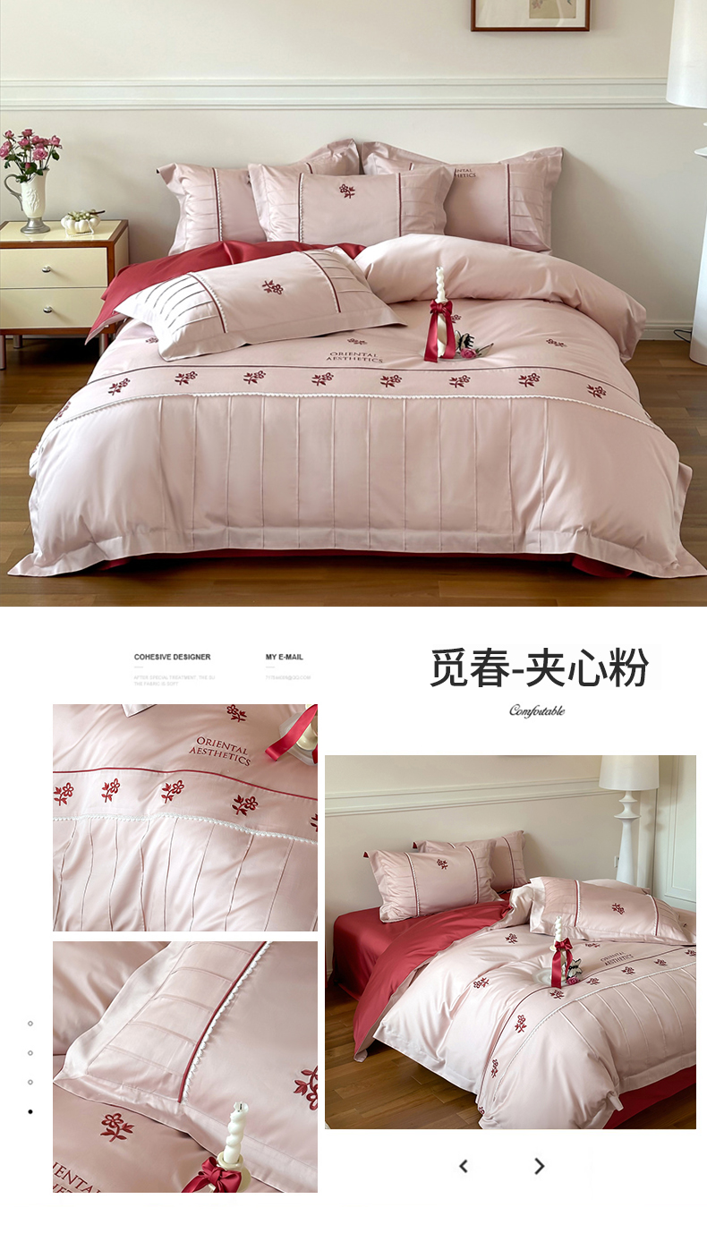 (总)宏羽纺家纺 2025新款100s全棉纯棉贡缎法式刺绣花边四件套,欧碧绿,月魄灰,蝶梦-浅香槟,蝶梦-星辰灰,蝶梦-奶油芝芝,觅春-夹心粉,觅春-午后清晨,觅春-云朵吐司,墨韵喜缘,绮梦,午后花房-汐云红,夕颜,花园之梦-奶咖,花园之梦-奶油芝芝,花园之梦-胭脂粉,爱情模样,江山画-红,慢慢爱,醉红颜,100支高精密金丝提花-欧碧绿,100支高精密金丝提花-月魄灰,纯棉时尚-玫瑰故事,纯棉时尚-甜漾,纯棉时尚-知喜-红,纯棉时尚-知喜-拼色