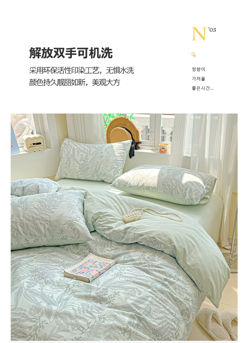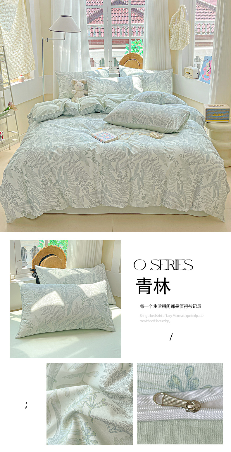 商品名称:小懒猪 2025年新款花卉小清新全棉13372四件套 青林