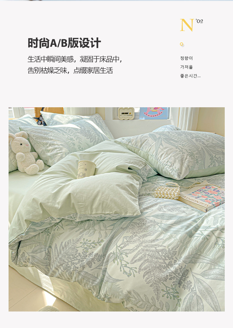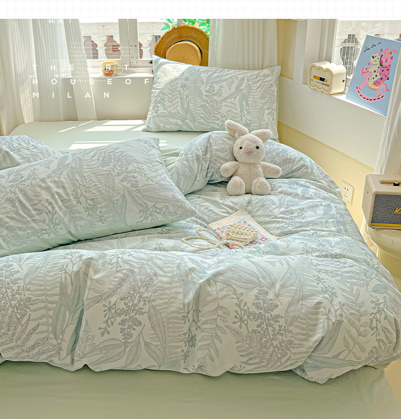 小懒猪 2025年新款花卉小清新全棉13372四件套 青林