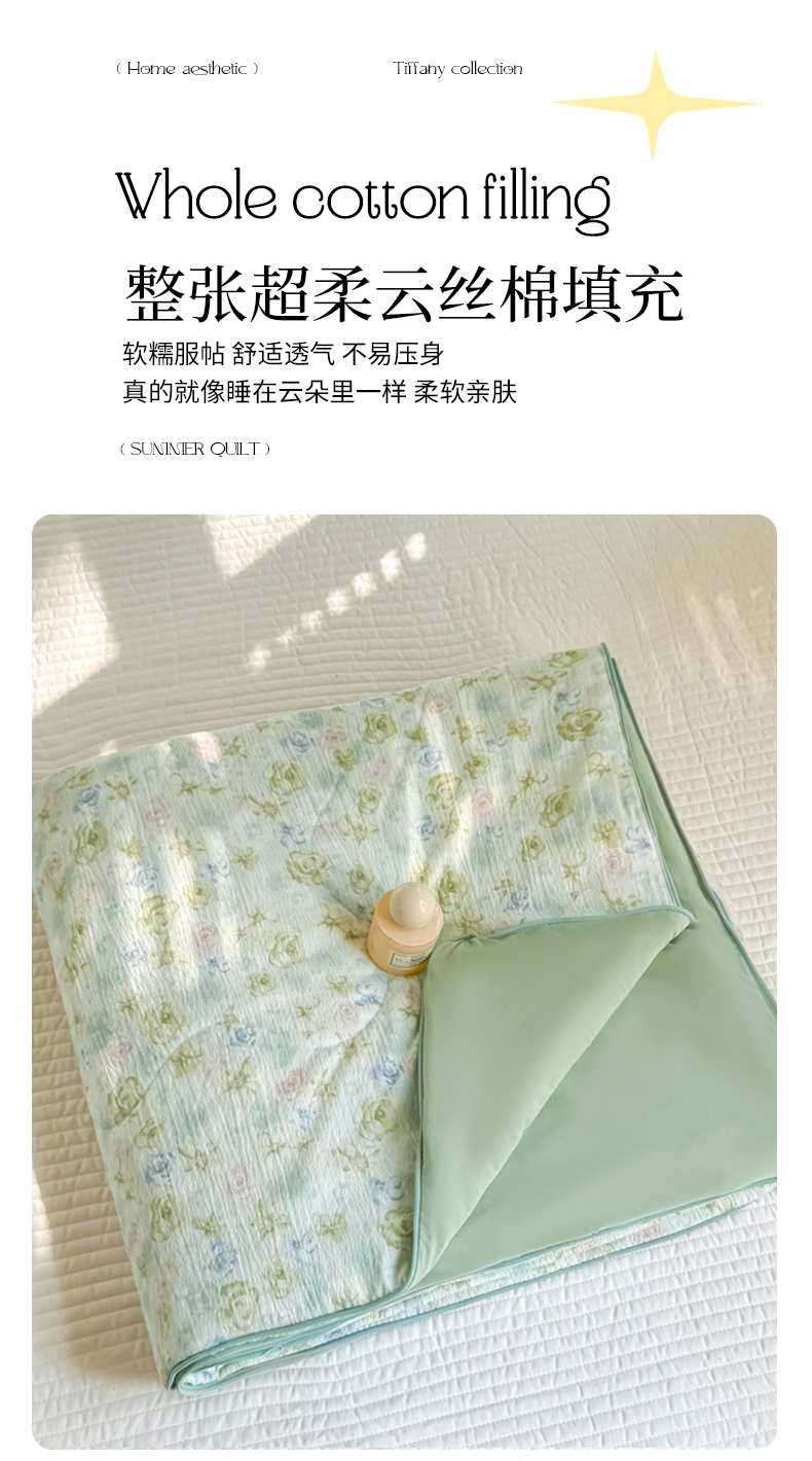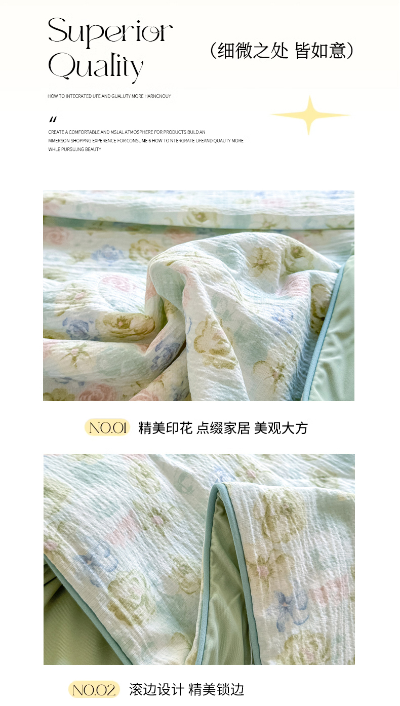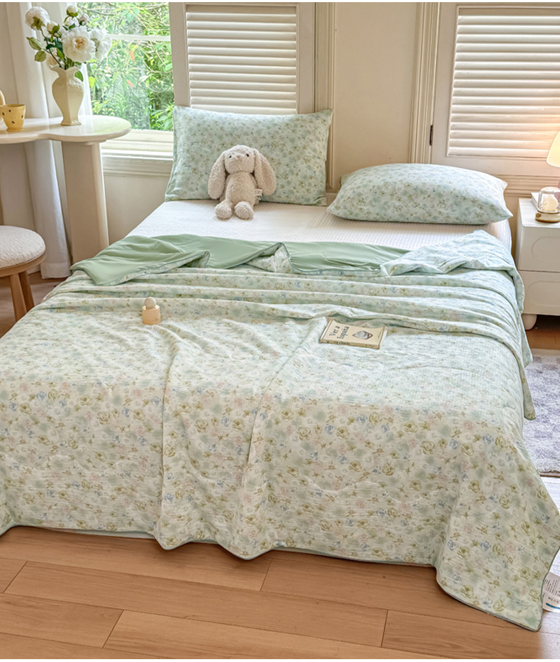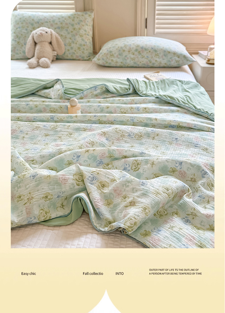 商品名称:丽美人家纺 2025新款爆款双拼皱皱纱冰皮被夏被夏凉被空调被 冰皮-绿野
