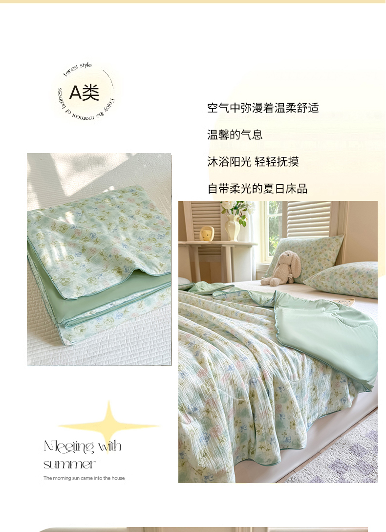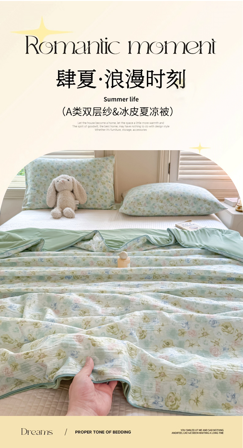 丽美人家纺 2025新款爆款双拼皱皱纱冰皮被夏被夏凉被空调被 冰皮-绿野