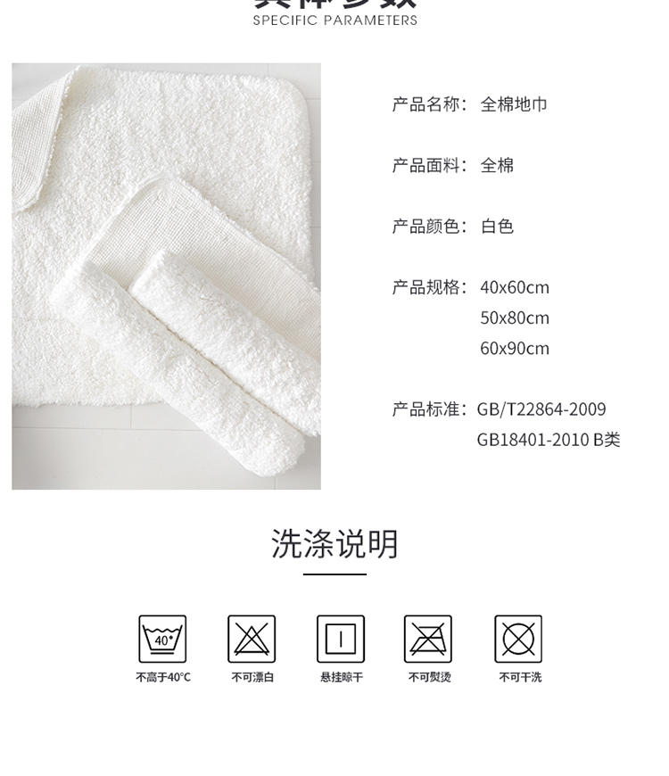 长毛地垫白色50*80