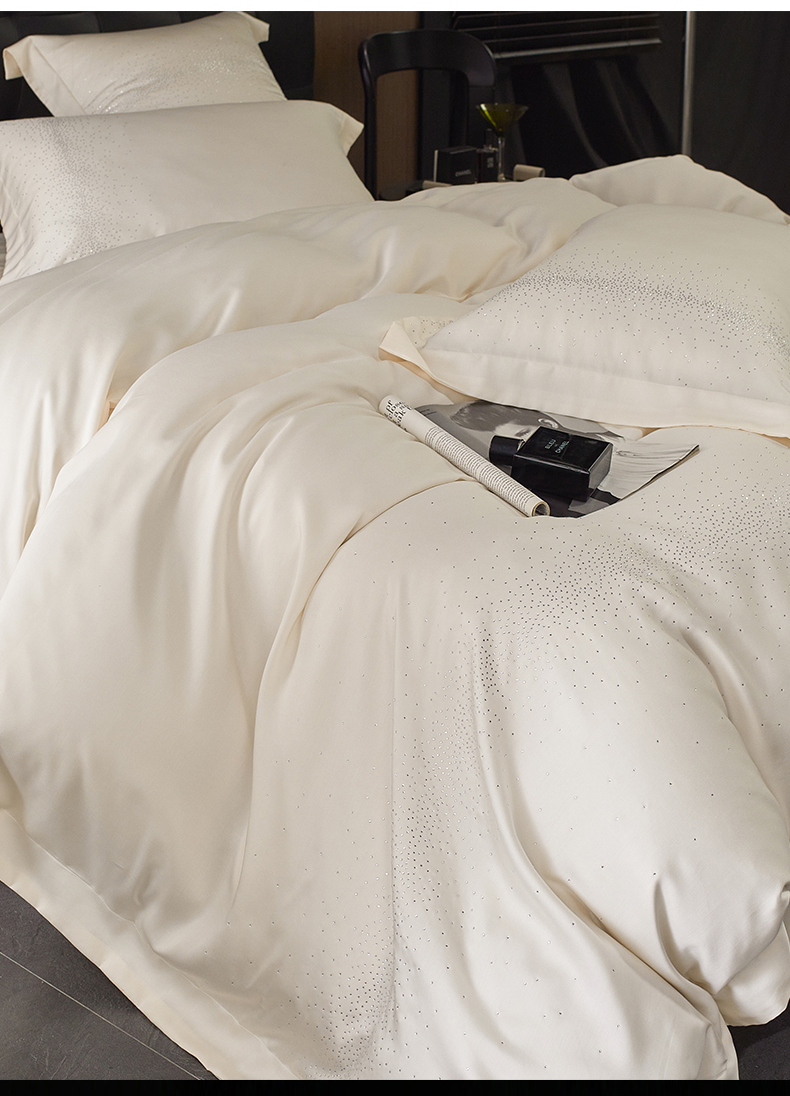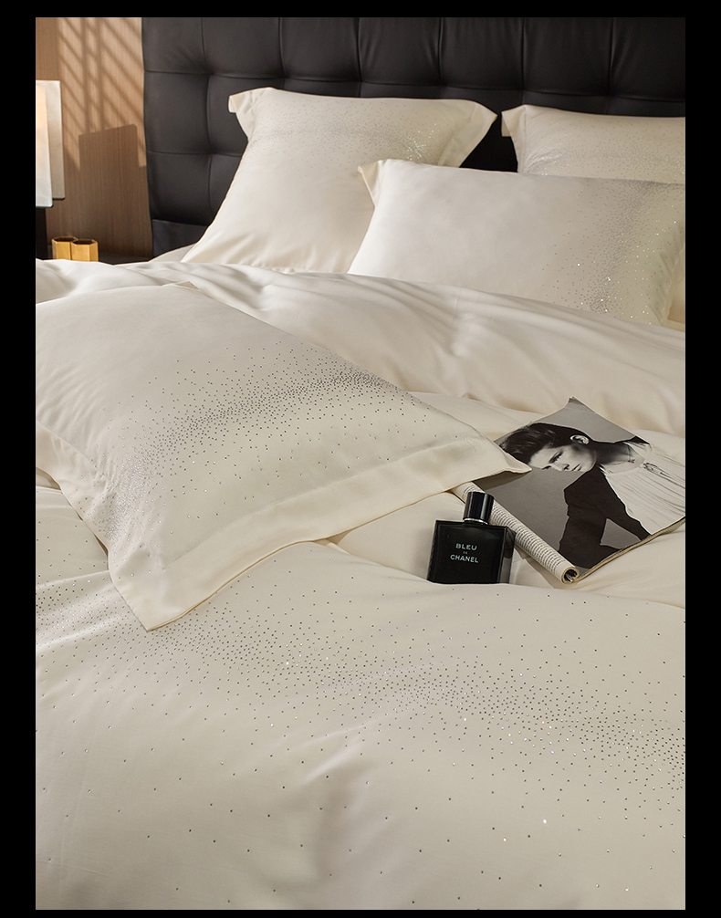 商品名称:鼎飞2025新款长绒棉烫钻四件套 皇家梦境-象牙米