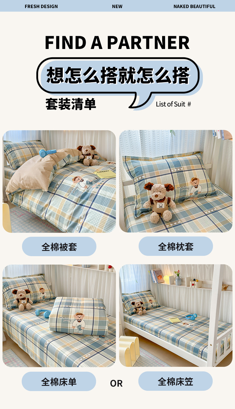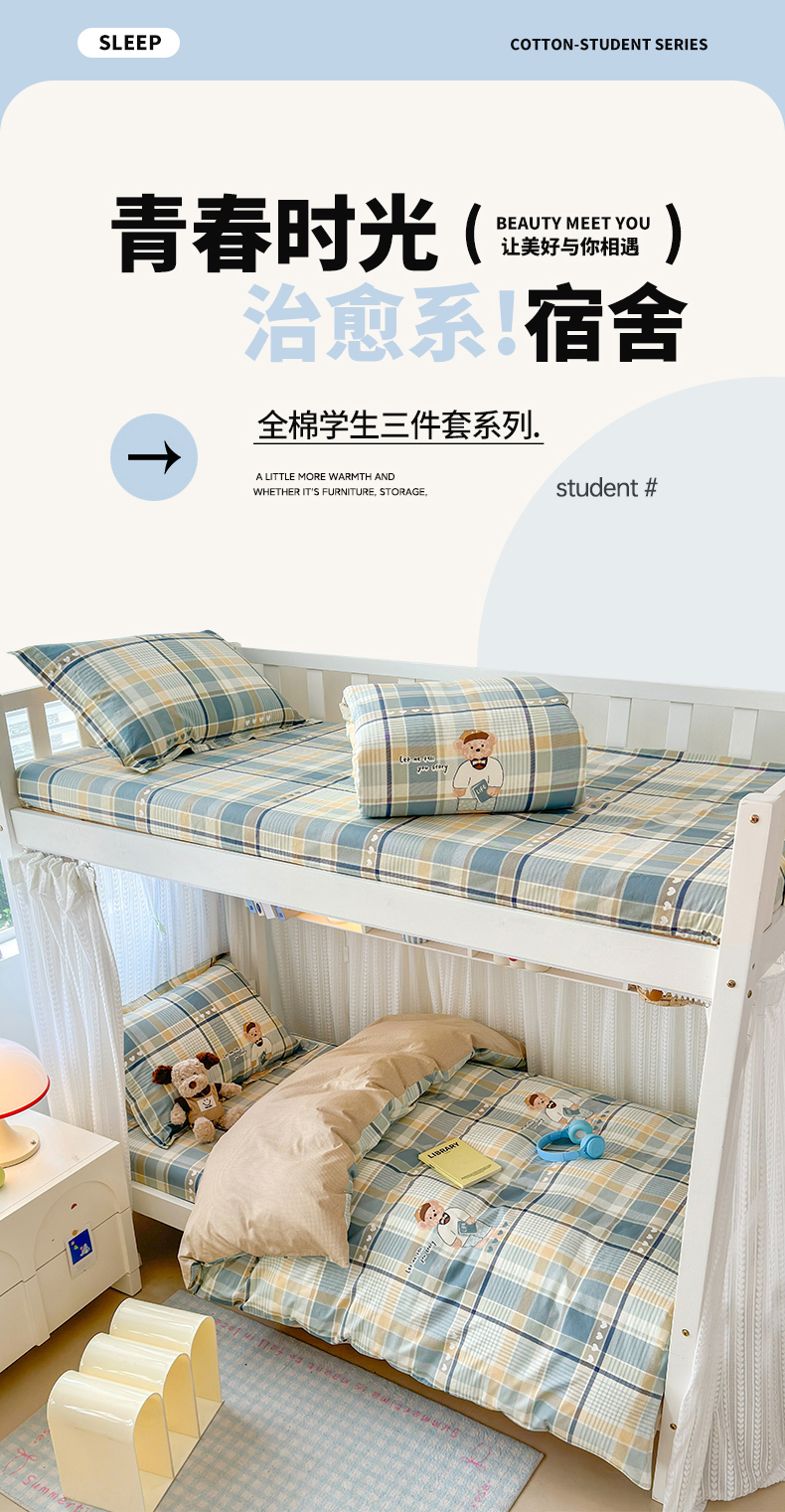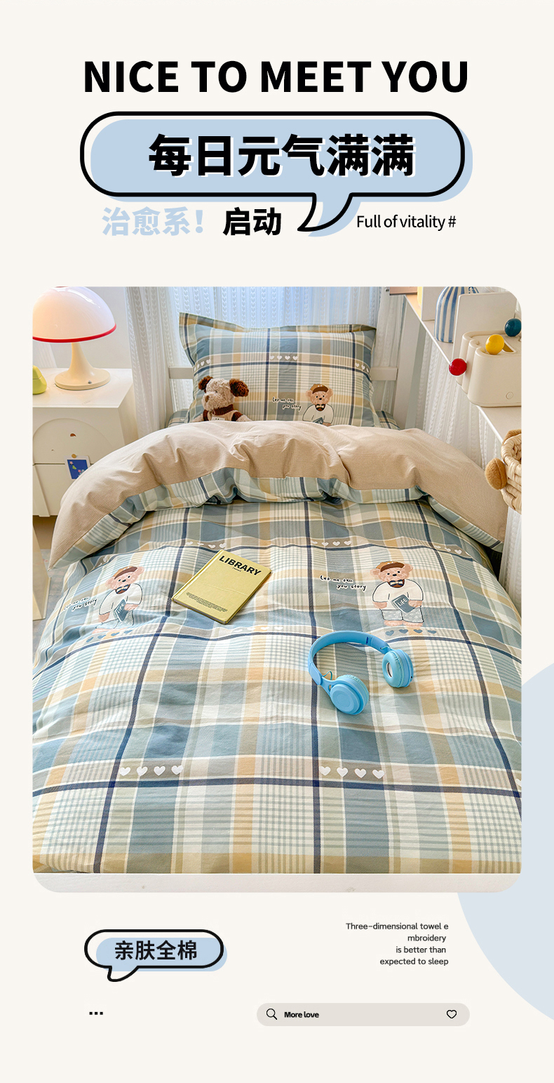 商品名称:拾物记 2025新款A类棉学生印花三件套 欢乐熊宝