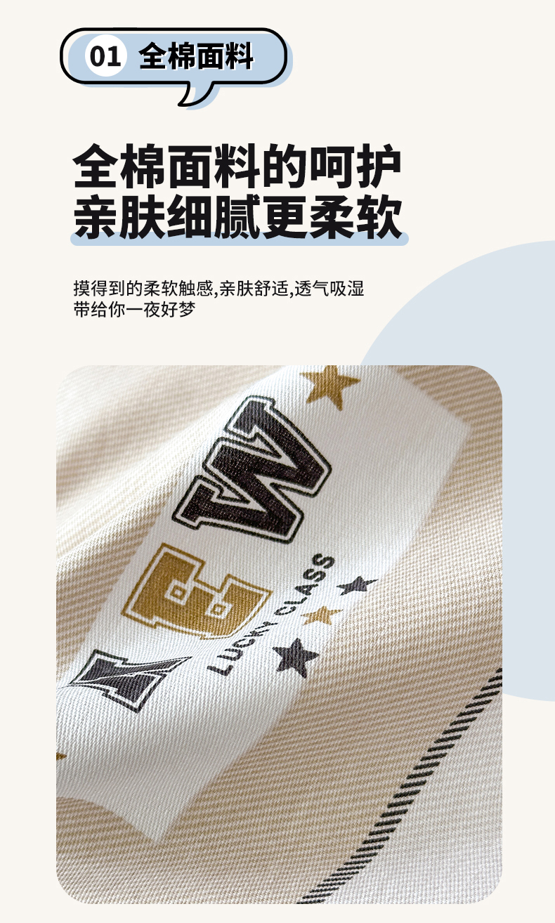 商品名称:拾物记 2025新款A类棉学生印花三件套 时尚之都
