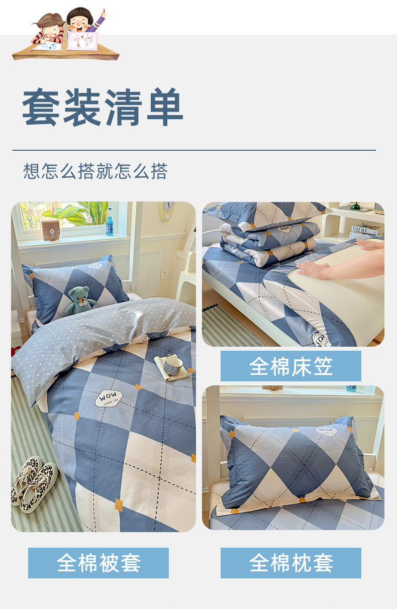 当前位置: 91家纺网 > 商品网购 > 床品套件 > 三件套 > 依庭 2025新款全棉印花学生三件套宿舍三件套全棉三件套纯棉三件套 意林
