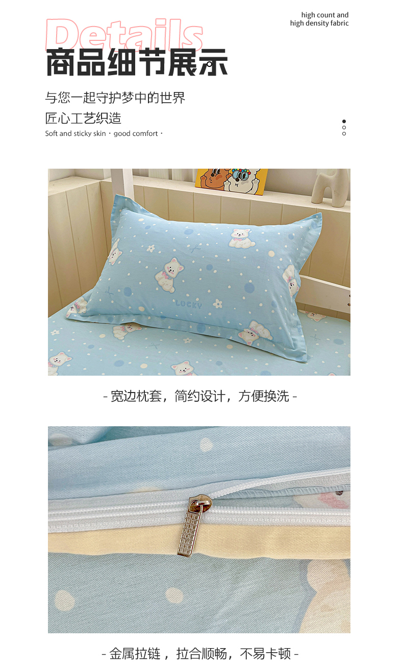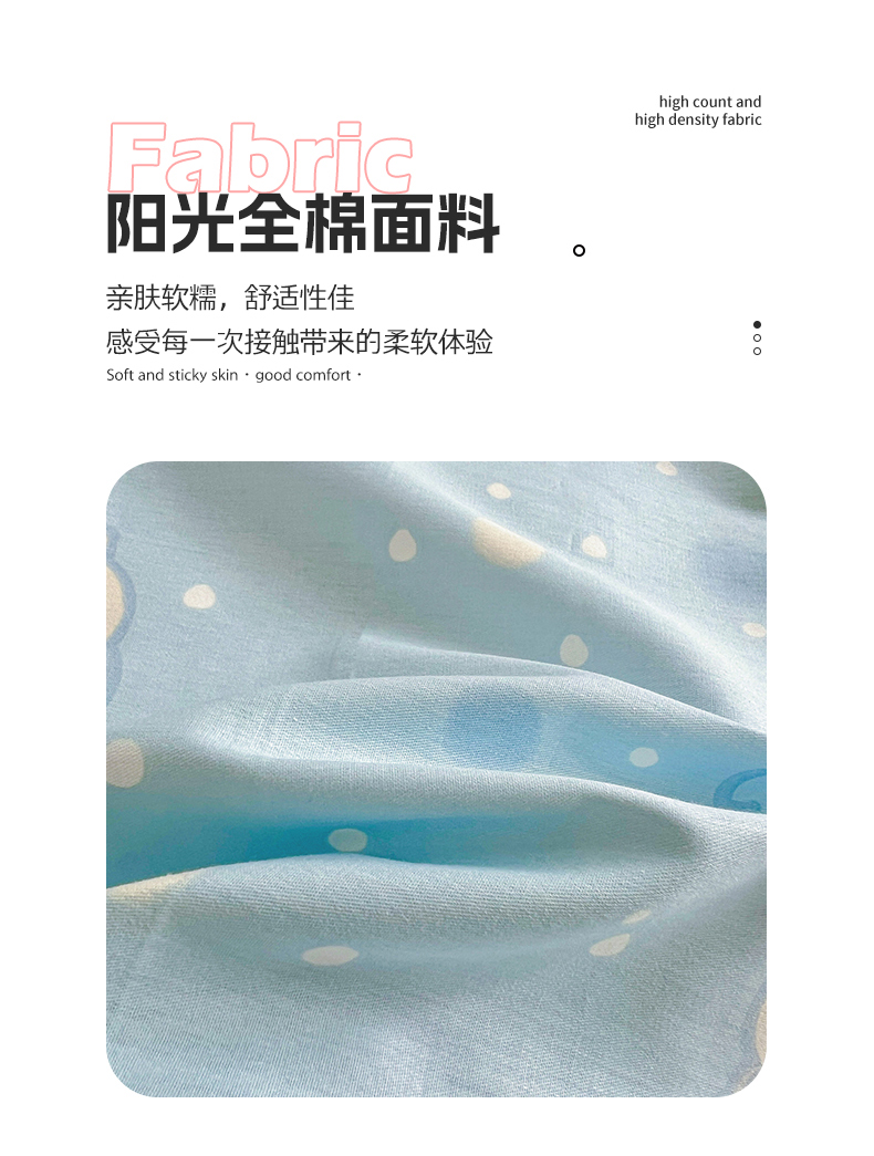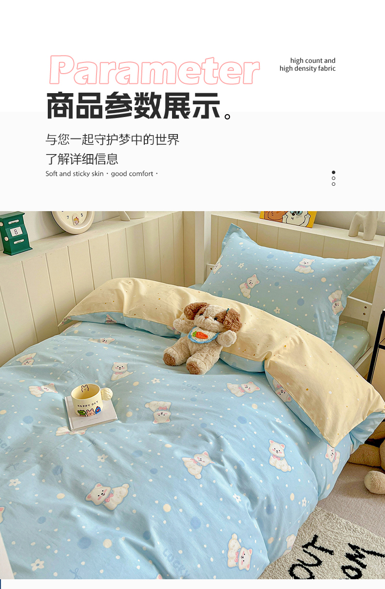 商品名称:春雨家居 2025新款学生季全棉三件套(预留缩水) 24.蓝色泡芙狗