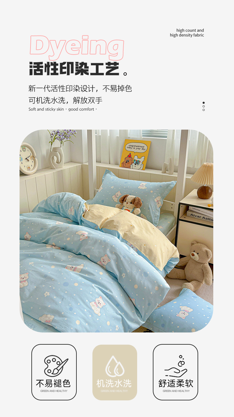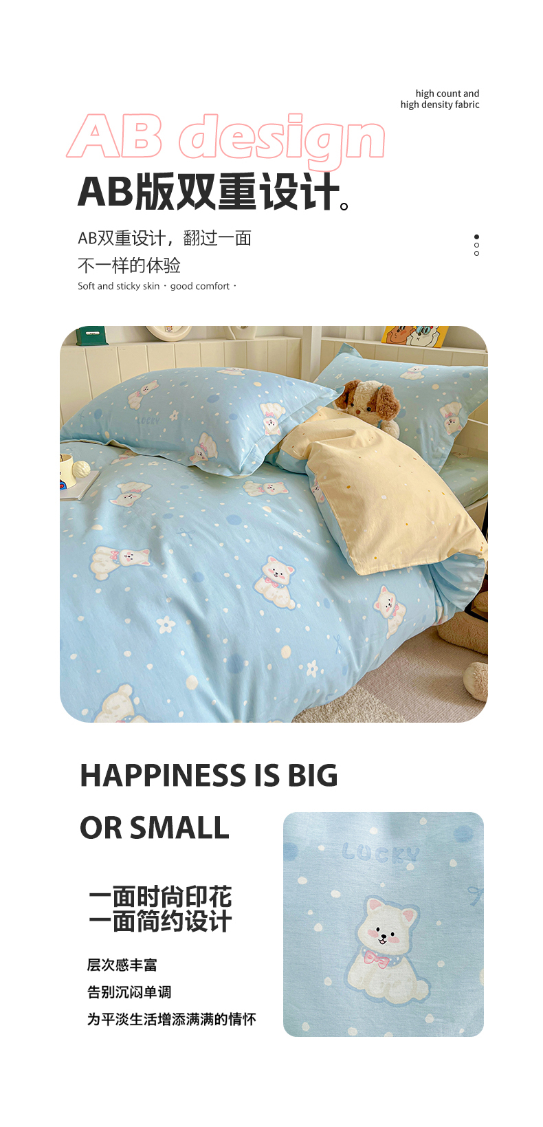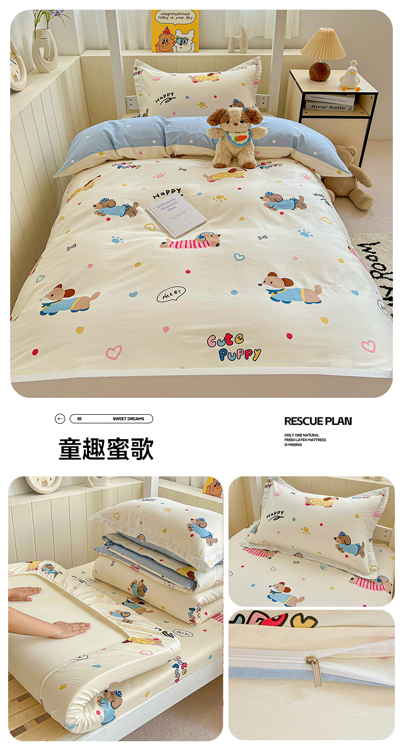 春雨家居 2025新款学生季全棉三件套(预留缩水) 24.蓝色泡芙狗