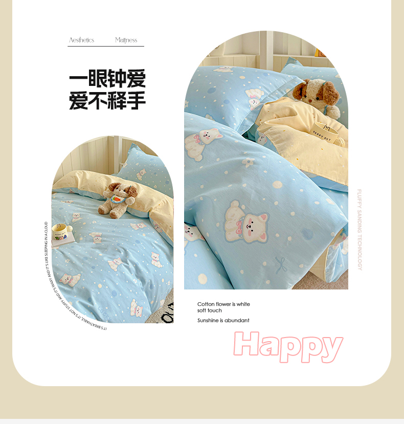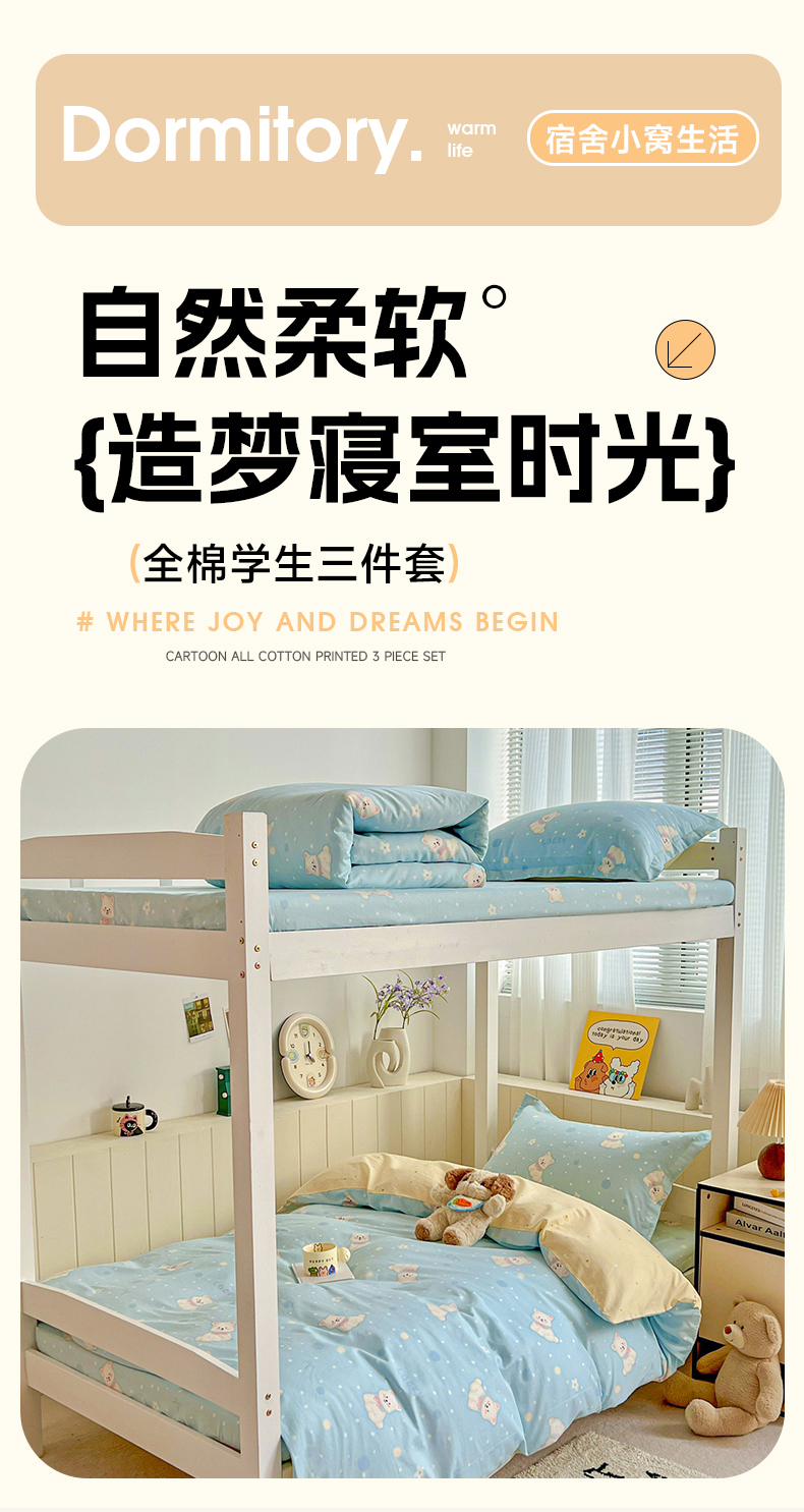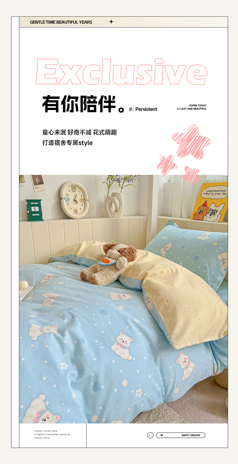 春雨家居 2025新款学生季全棉三件套(预留缩水) 24.蓝色泡芙狗