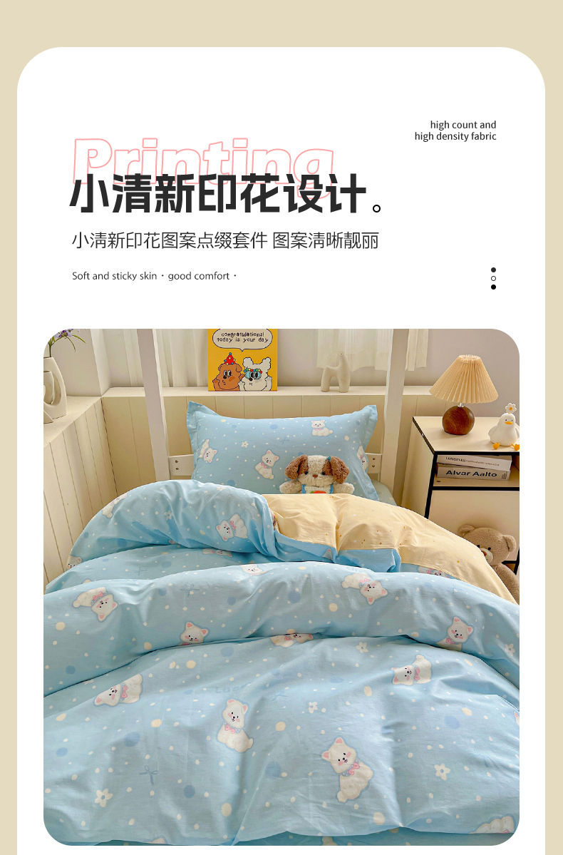 (总)春雨家居 2026新款全棉纯棉花ins减龄可爱小清新四件套(提供买家秀、质检报告、有预留缩水)),贝尔兰-兰,比星邦尼狗,布布迷宫,春漫庭,达乐宝贝,朵唯,芙莉,格子布丁狗,故事小黄花,韩系拼图,旧书折痕-蓝,蓝拼KT-兰,浪漫花园,洛克庄园-绿,萌趣汪汪,暮洛星,奶油凯蒂-兰,奶油羞羞狗,清秋夜曲,秋日确幸-豆沙,苏林-绿,苏糖-粉,夏日花莳,小菠萝,小猫时光-兰,心动庄园,星星童话园-兰,叶语轻喃-绿,玉海棠,芋泥小狗,醉梦惜花