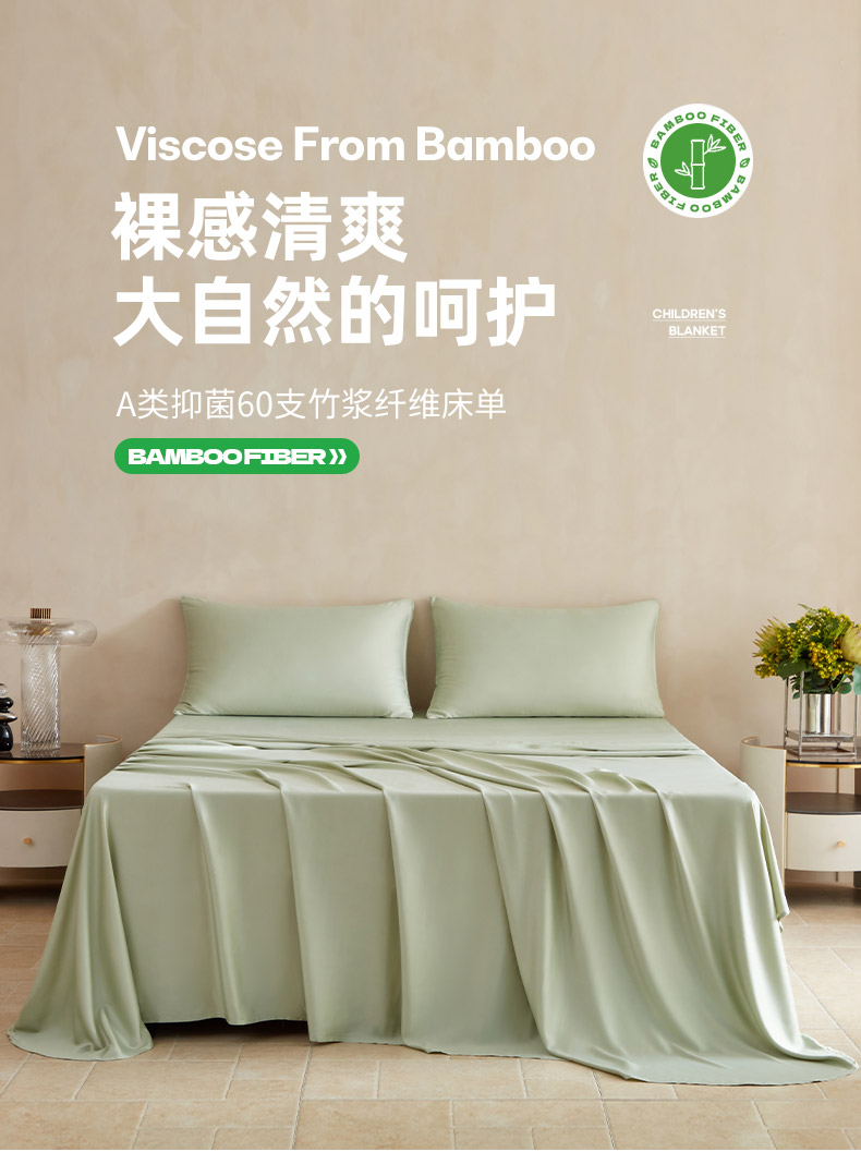 商品名称:轩和家居 2025新款天竹60支竹浆纤维A类婴幼儿级别天然抗菌抑菌系列床单单件-单床单 淡紫
