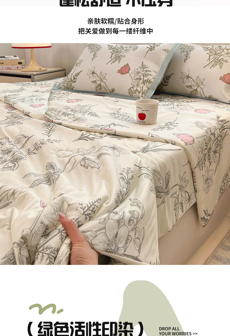 200x230cm单夏被+1.8床笠款凉席+枕套一对