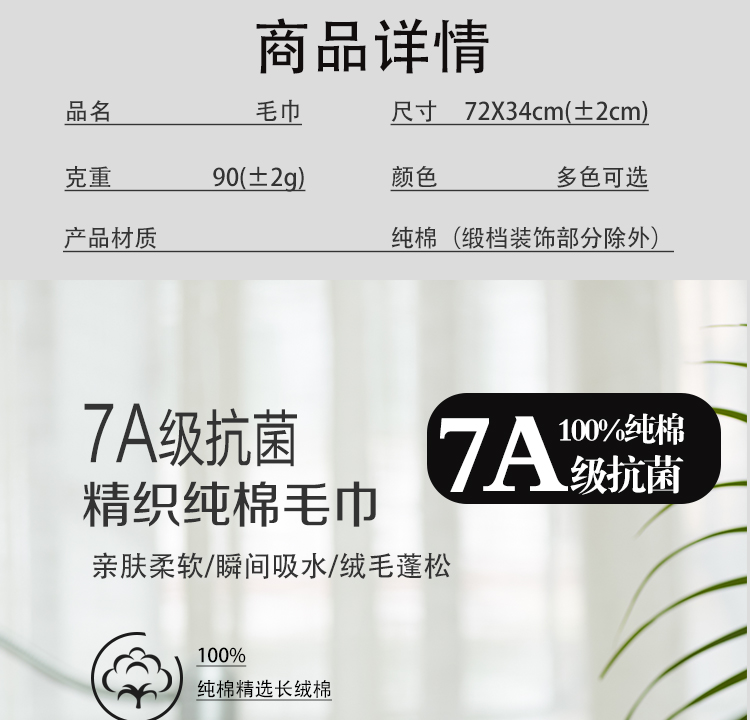 商品名称:(总)娇兰毛巾 2025新款7A抗菌唯薇毛巾